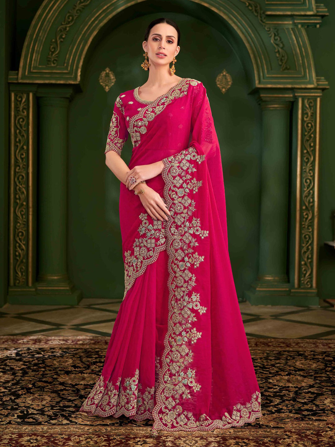 Georgette Bridal Saree in Pink and Majenta with Sequence work