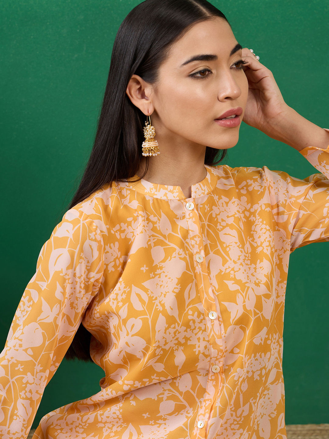 Yellow color Co-ords Set in Georgette fabric with Floral work