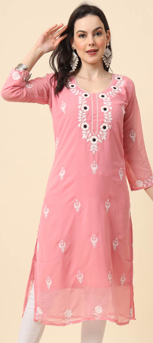 Green color Kurti in Georgette fabric with Embroidered, Thread work