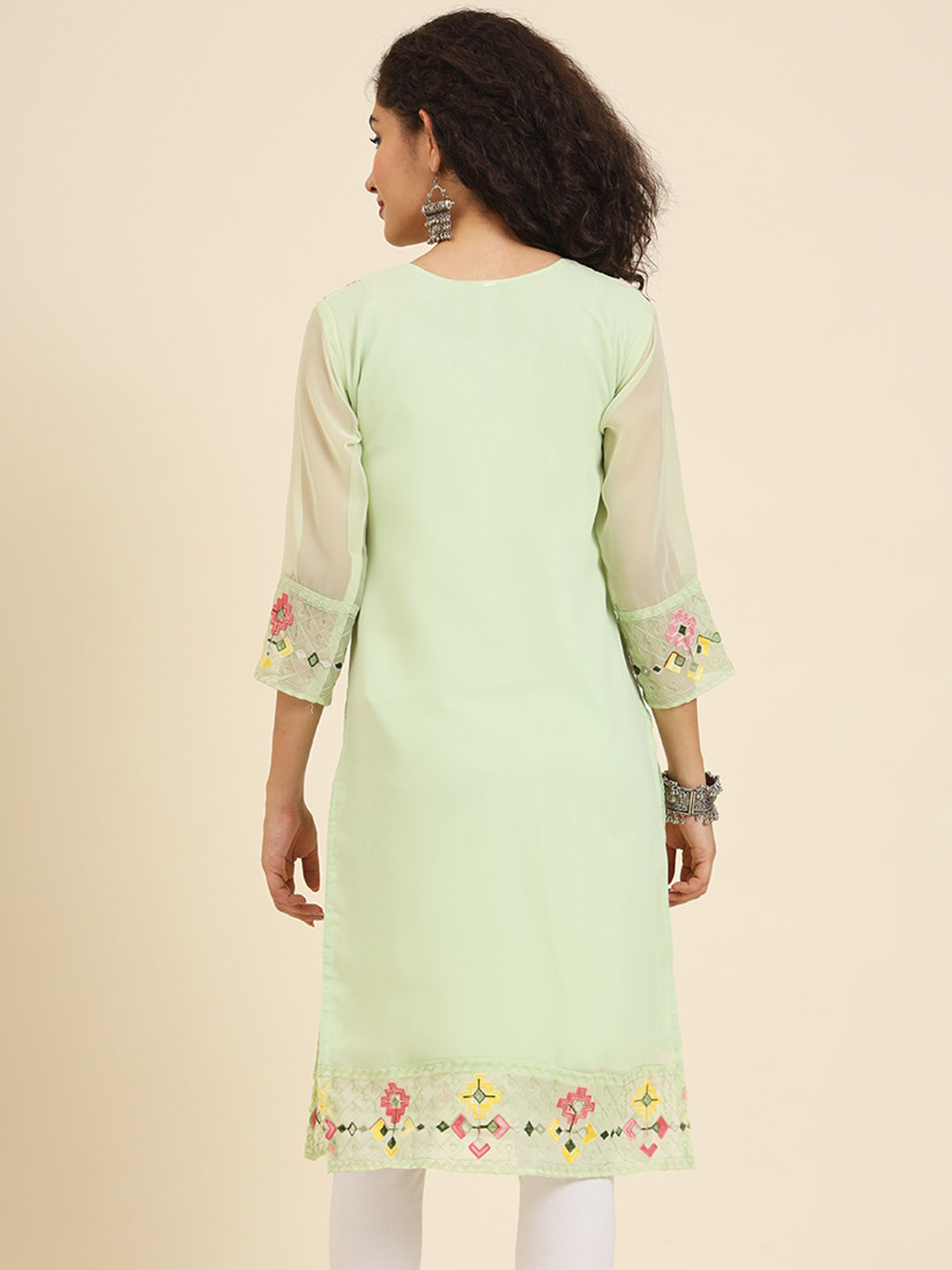 Green color Kurti in Georgette fabric with Embroidered, Resham, Thread work