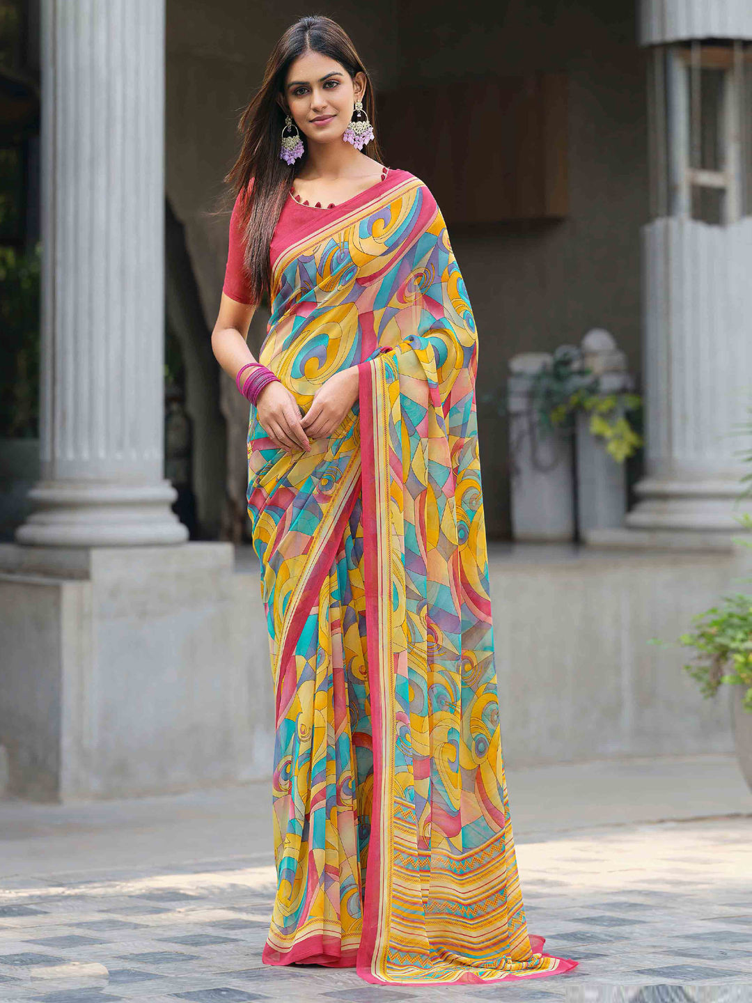 Multicolor color Saree in Georgette fabric with Digital Print work