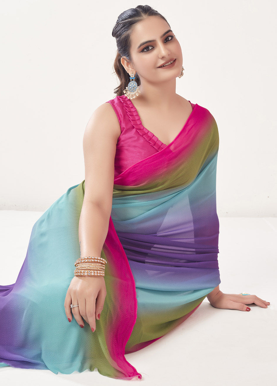 Multicolor color Saree in Georgette fabric with Ombre, Printed work