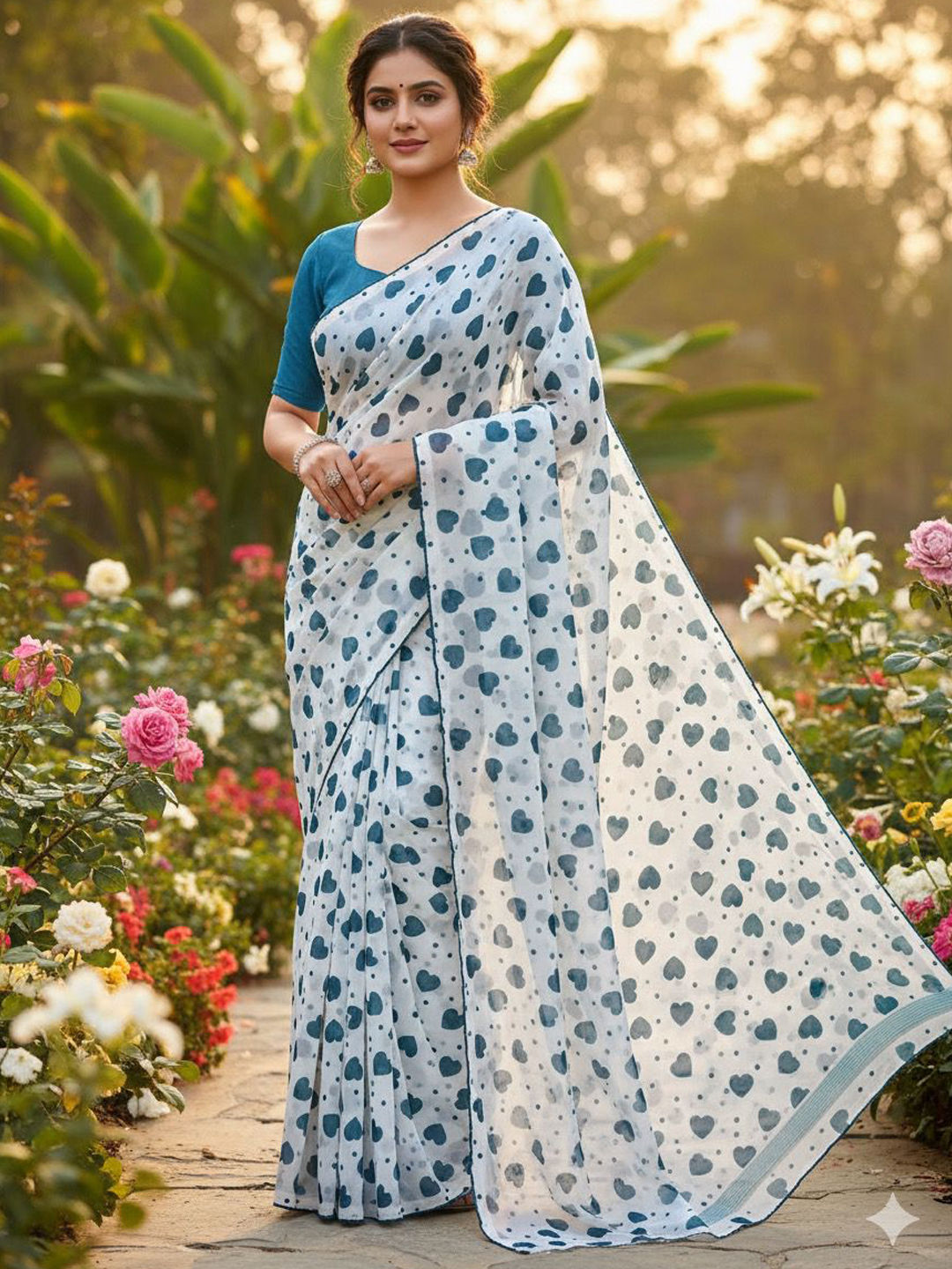 Georgette Party Wear Saree in Black and Grey with Printed work