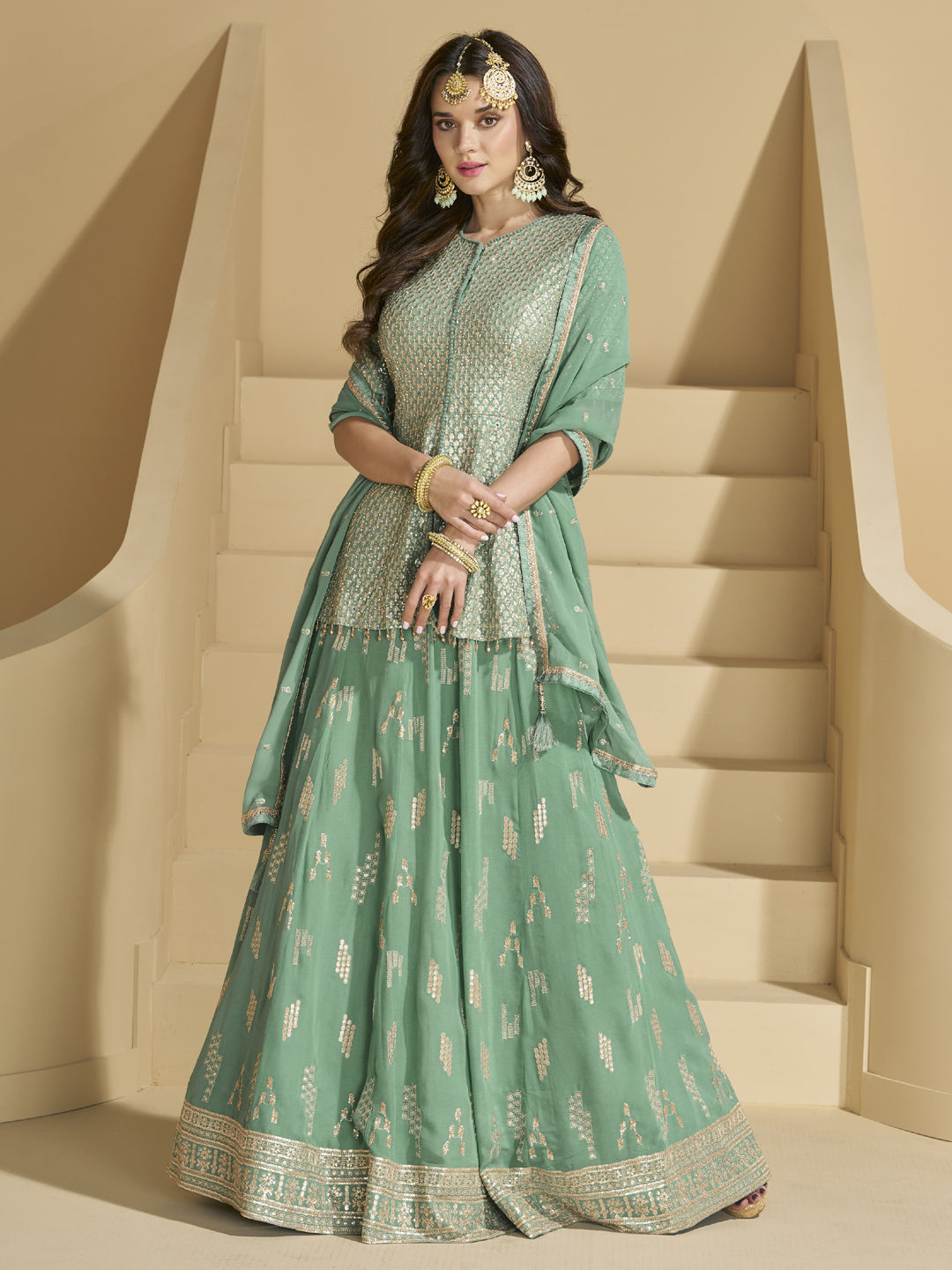 Green color Long Lehenga Choli in Georgette fabric with Embroidered, Sequence work