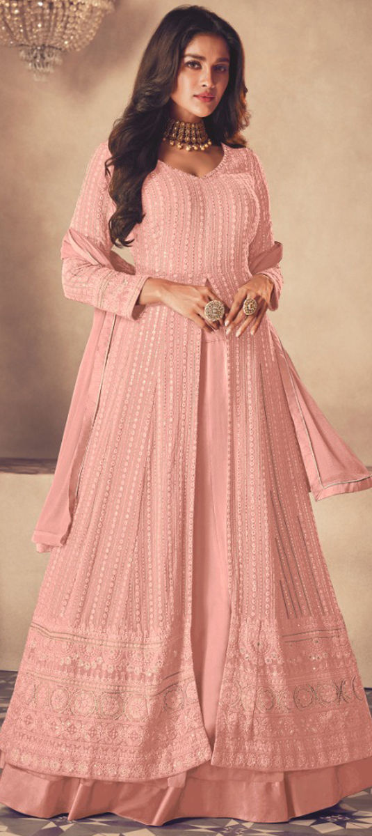 Pink and Majenta color Long Lehenga Choli in Georgette fabric with Embroidered, Resham, Sequence, Thread work