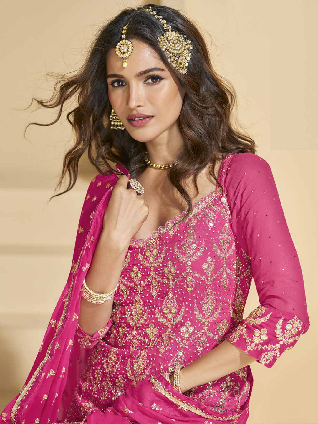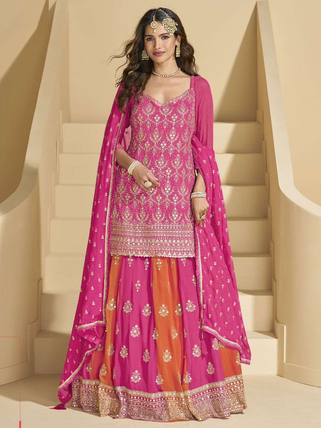 Pink and Majenta color Long Lehenga Choli in Georgette fabric with Embroidered, Sequence work