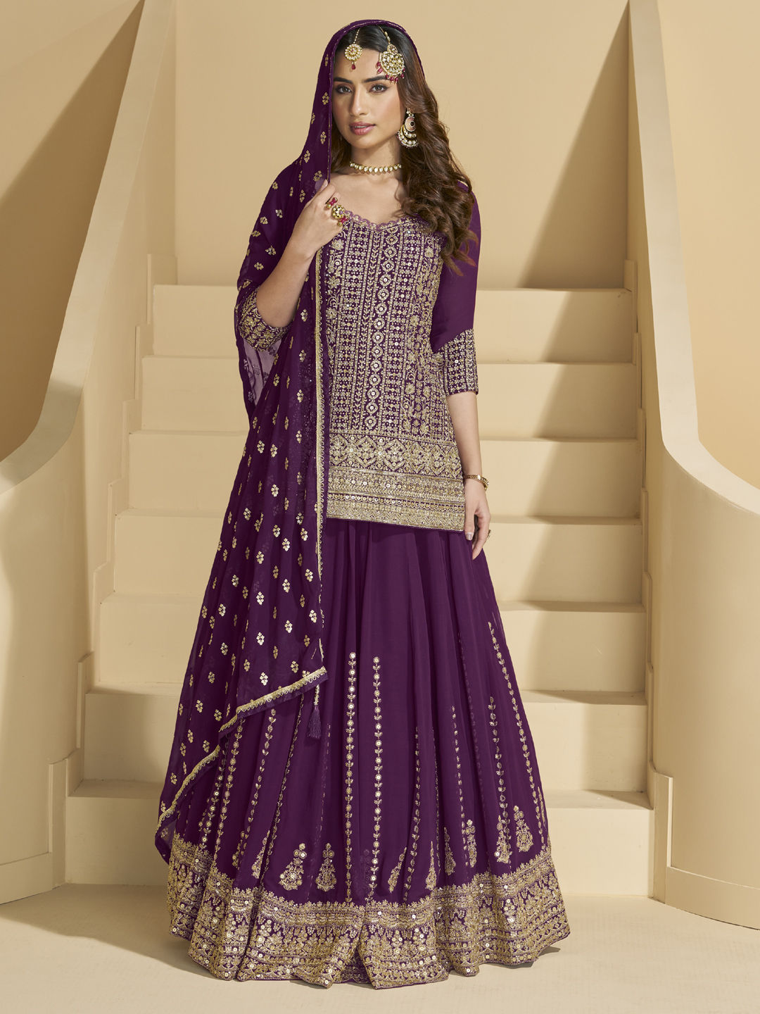 Purple and Violet color Long Lehenga Choli in Georgette fabric with Embroidered, Sequence work