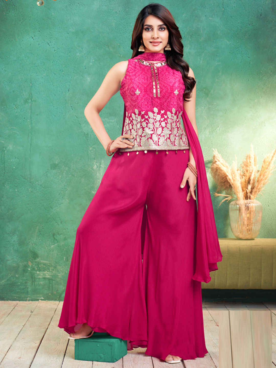 Silk Engagement Salwar Kameez in Pink and Majenta with Cut Dana work