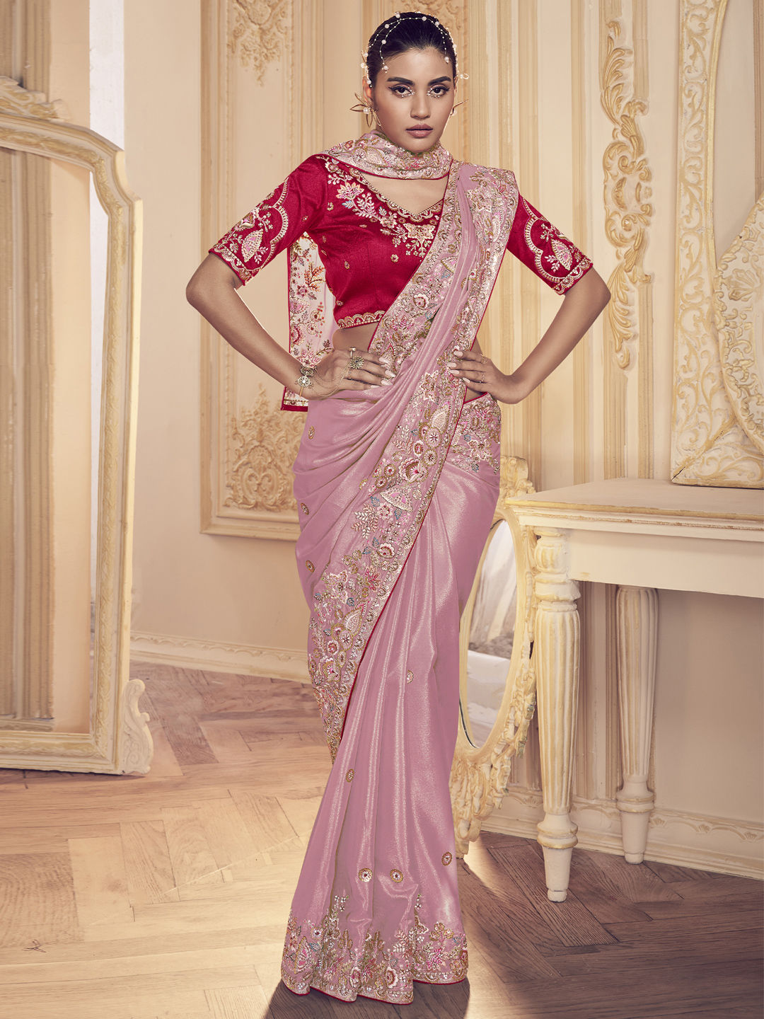 Pink and Majenta color Saree in Georgette fabric with Embroidered, Resham, Sequence, Thread work