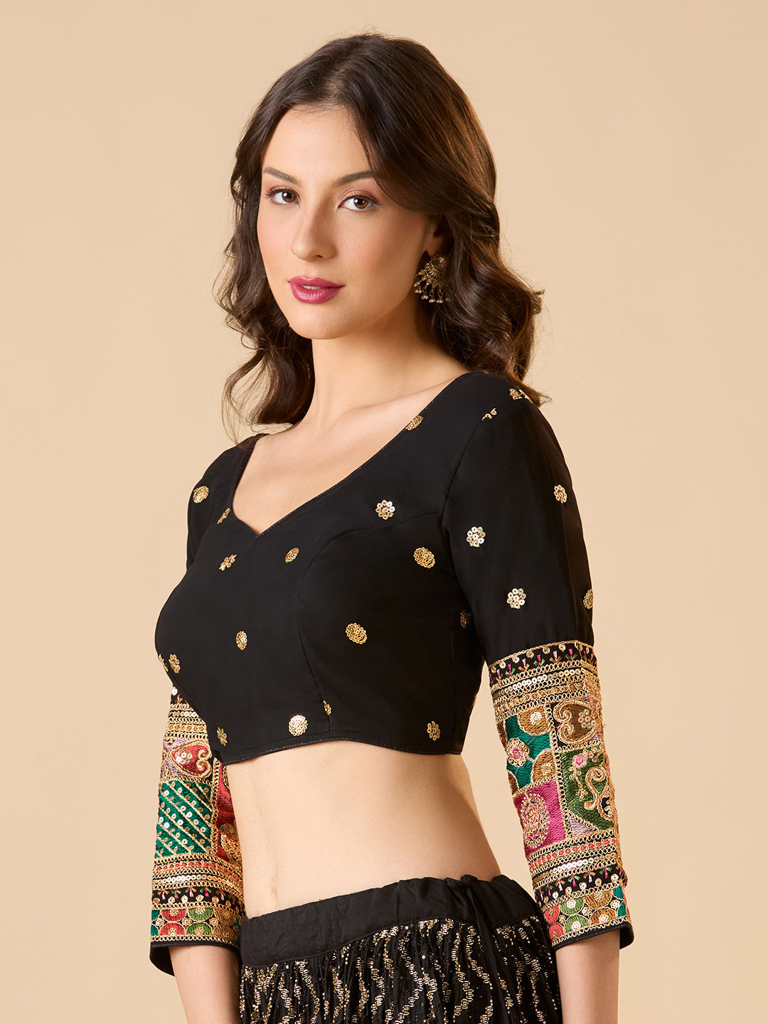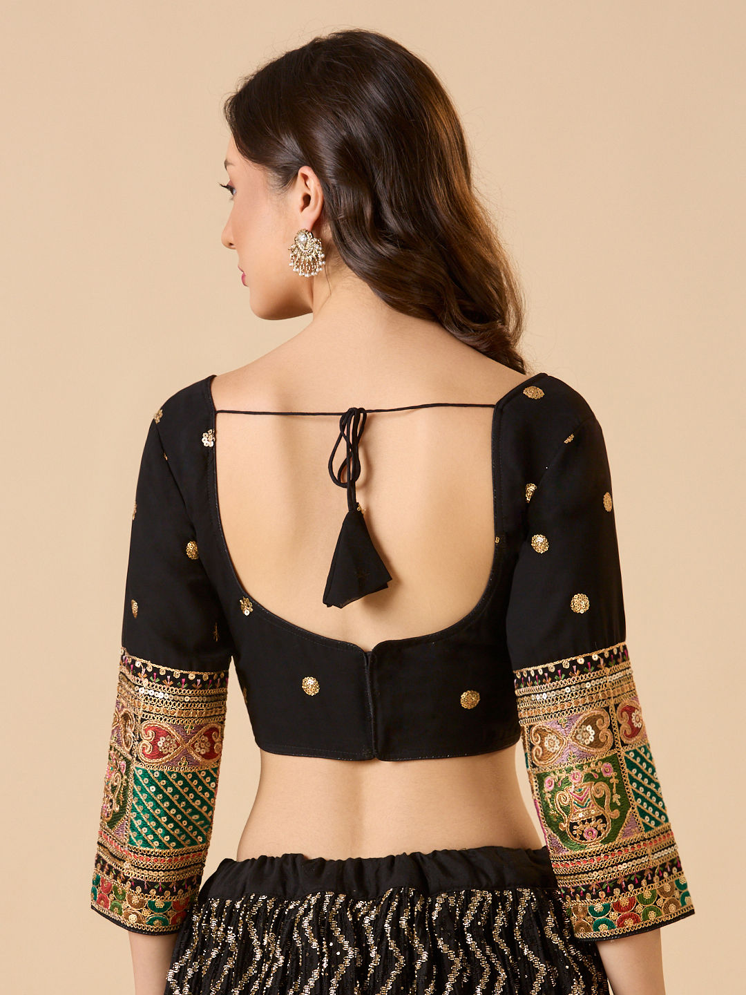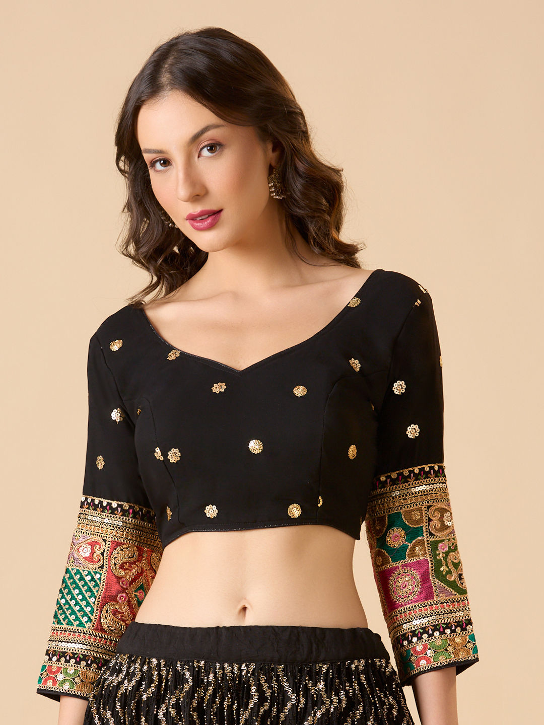 Black and Grey color Blouse in Georgette fabric with Sequence work