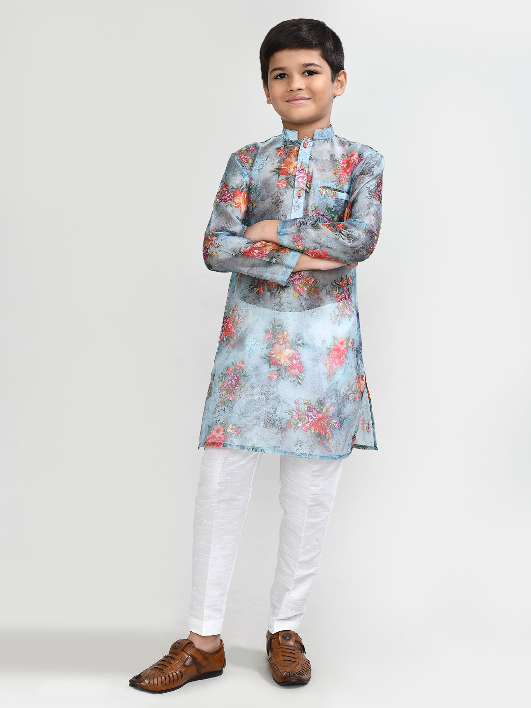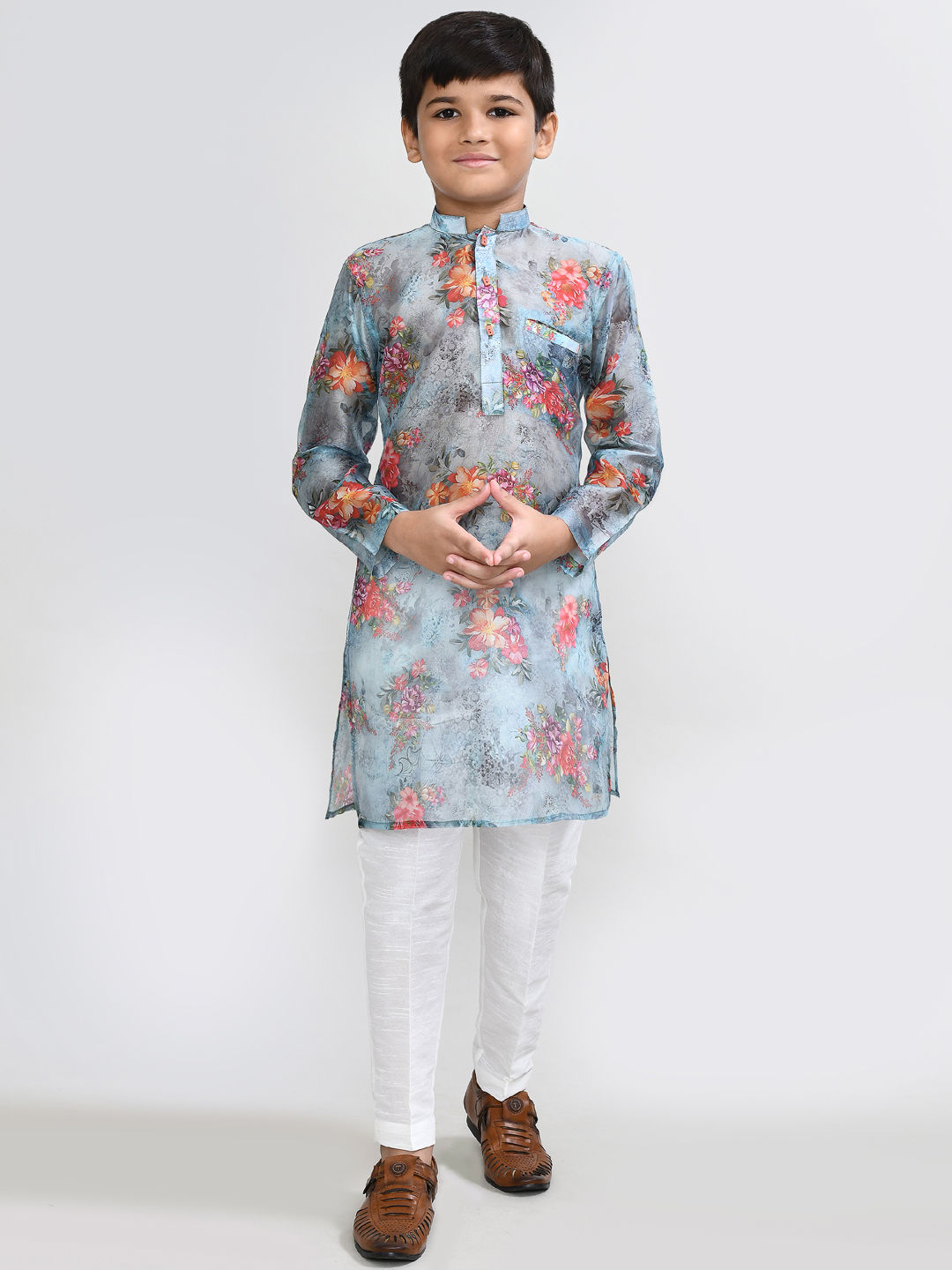 Cotton Festive Boys Kurta Pyjama in Multicolor with Printed work