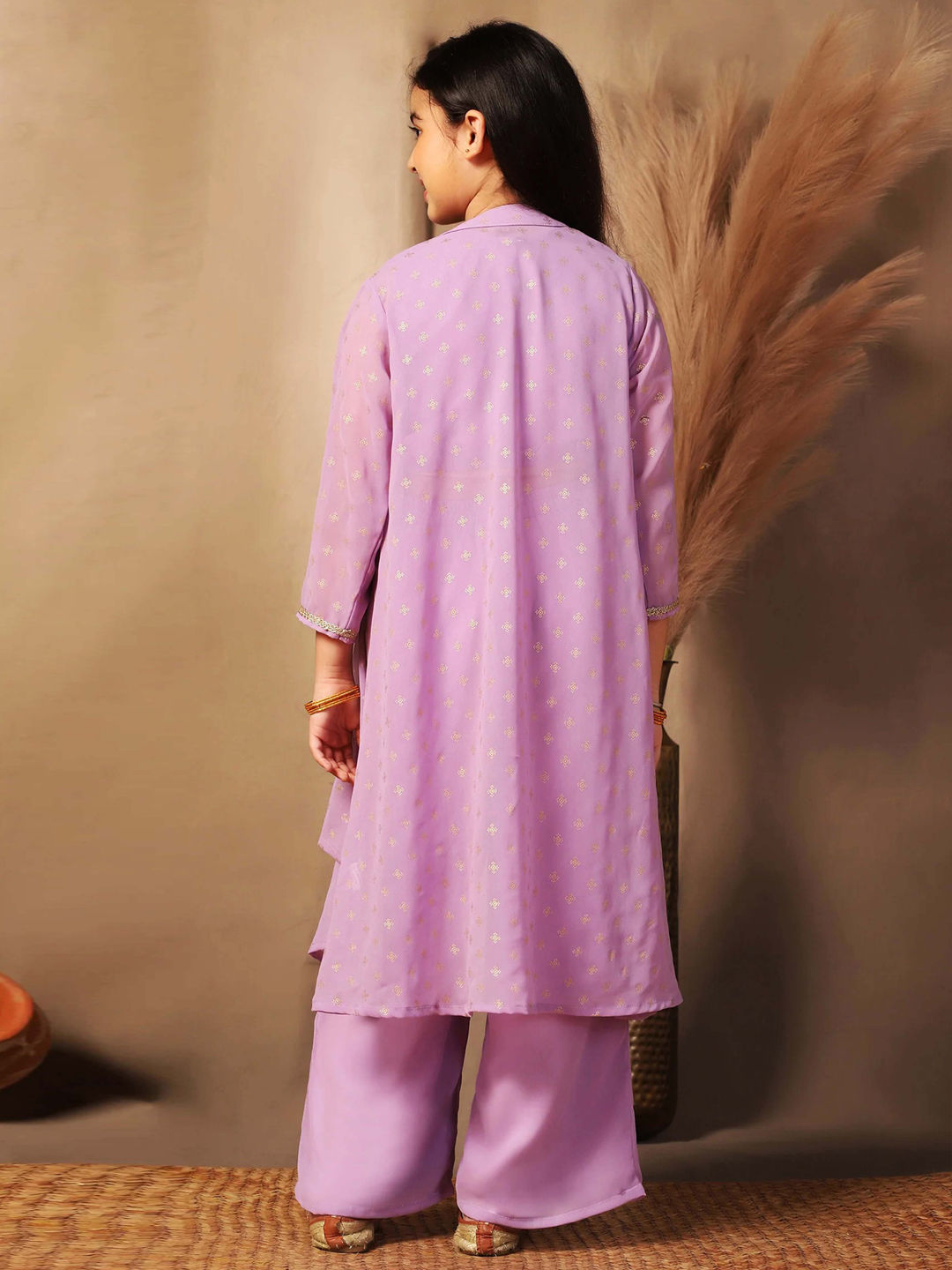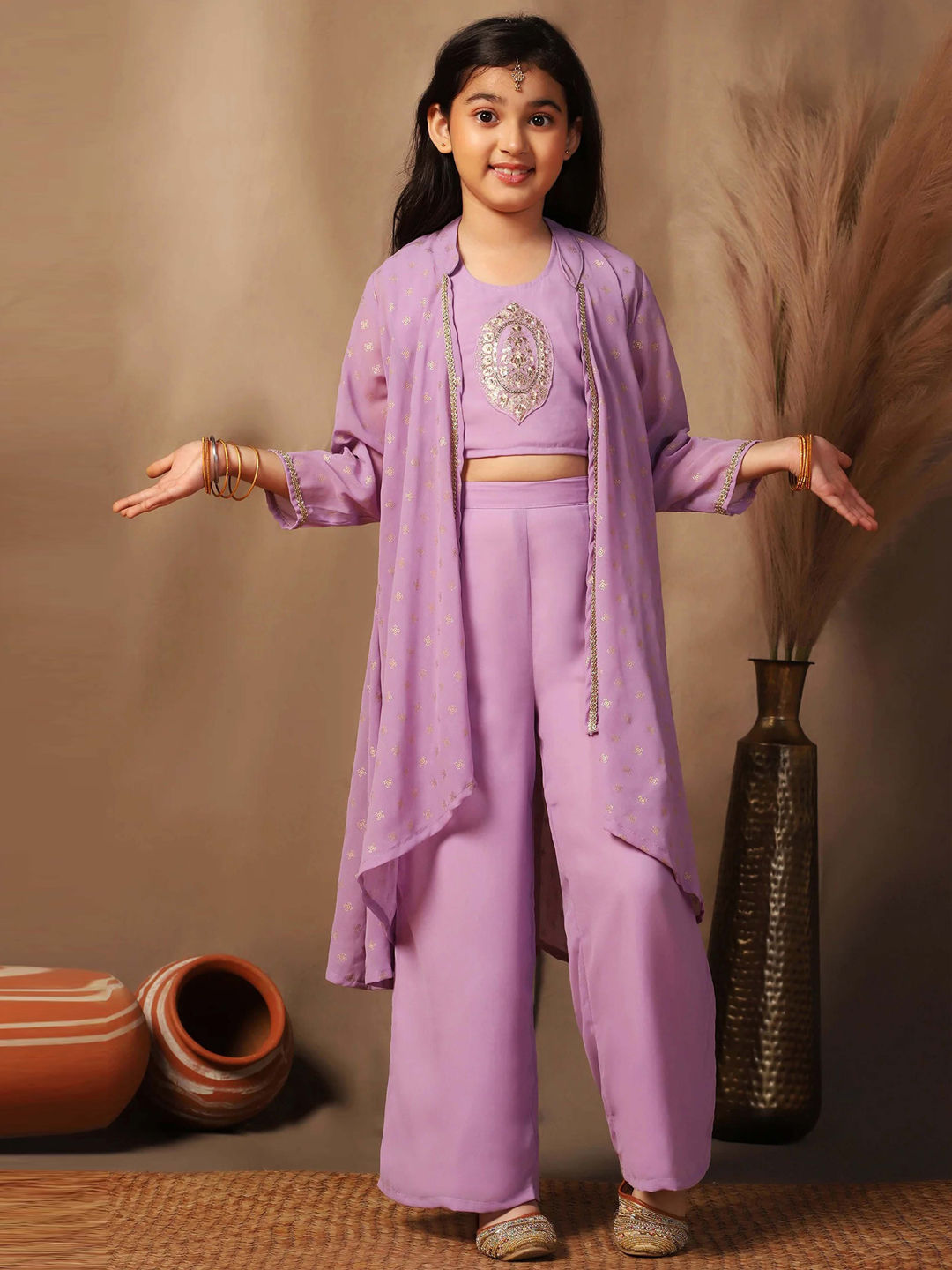 Georgette Festive Girls Top with Bottom in Purple and Violet with Printed work