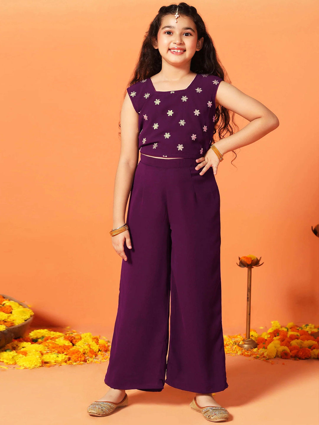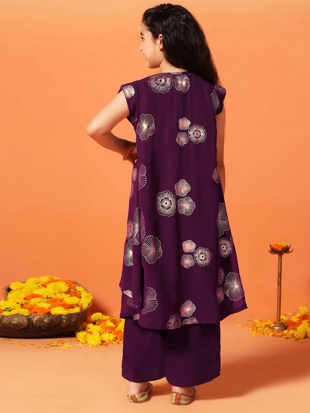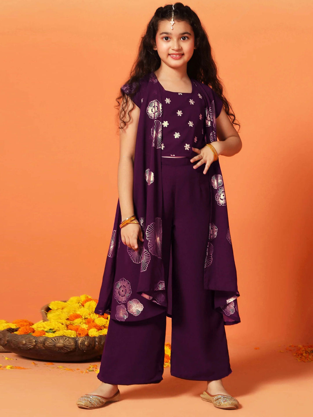Purple and Violet color Girls Top with Bottom in Georgette fabric with Floral, Printed work