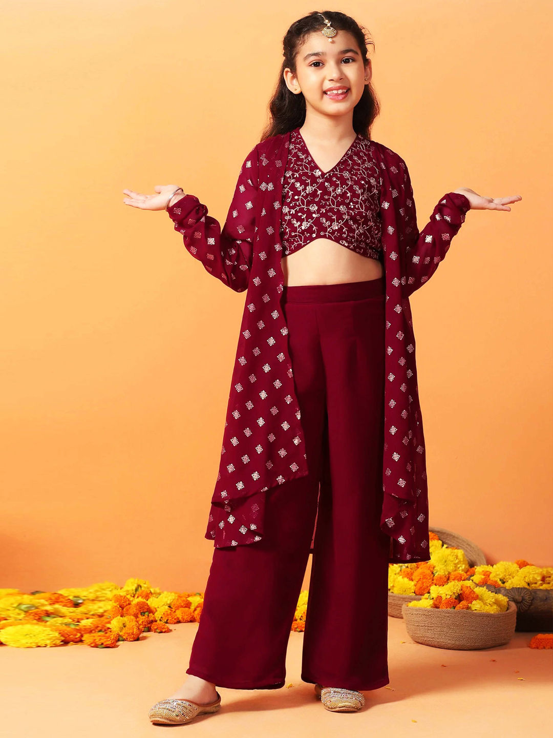 Red and Maroon color Girls Top with Bottom in Georgette fabric with Embroidered work