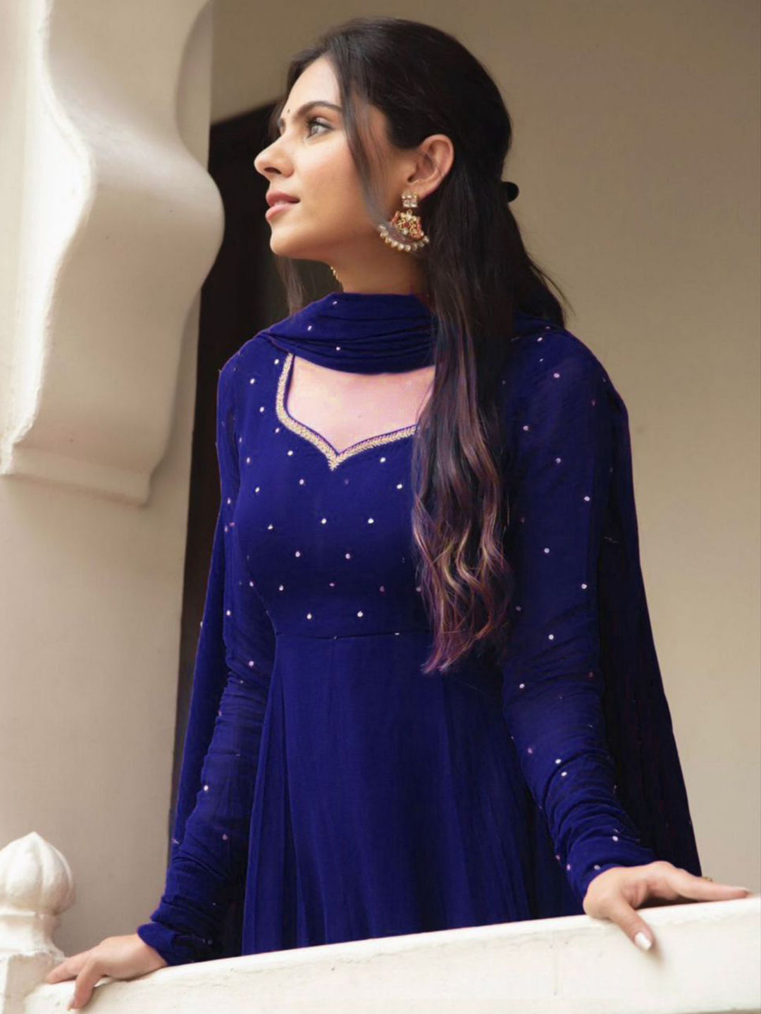 Blue color Gown in Georgette fabric with Sequence work
