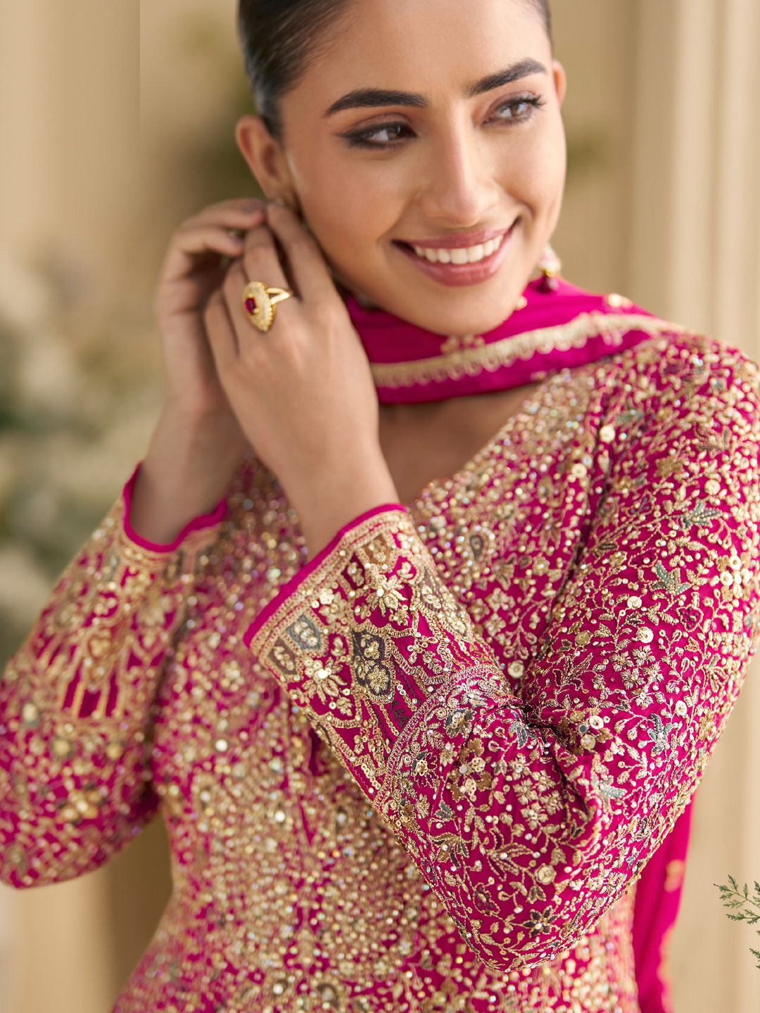 in Pink and Majenta with Embroidered work