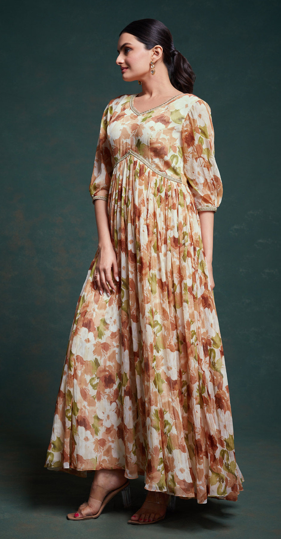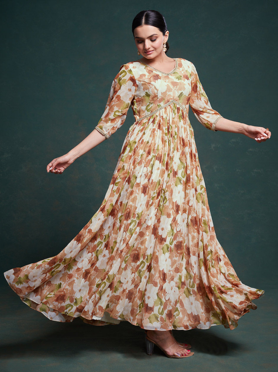 Georgette Festive Gown in Red and Maroon with Gota Patti work
