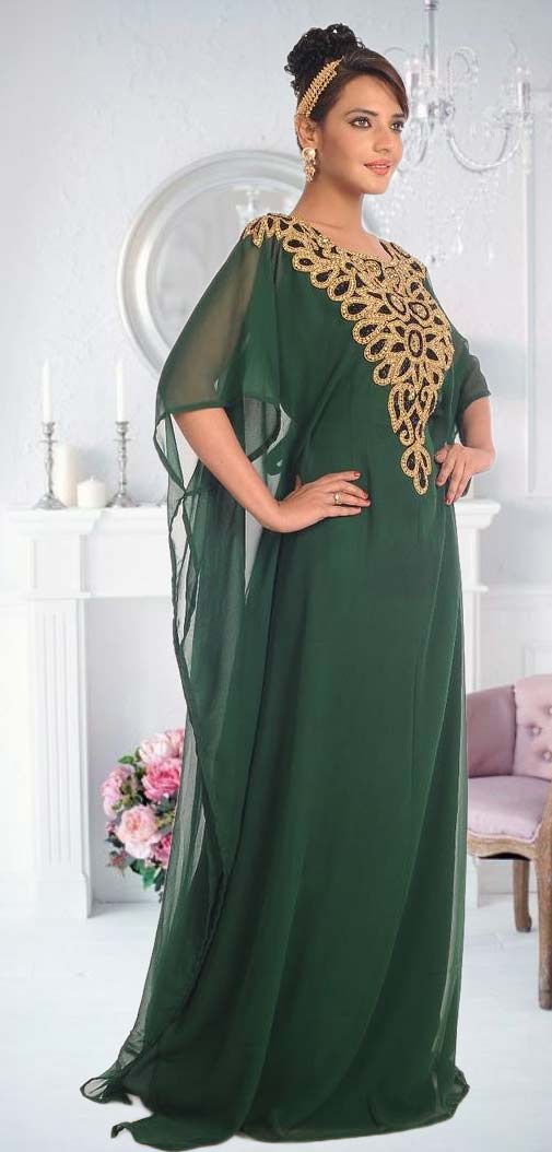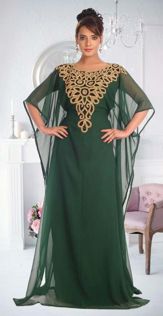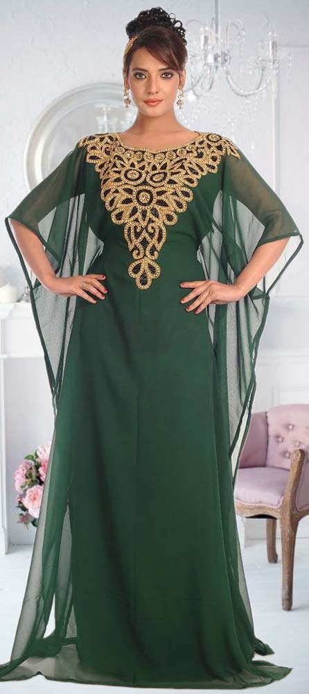Green color Kaftan in Georgette fabric with Embroidered, Thread work