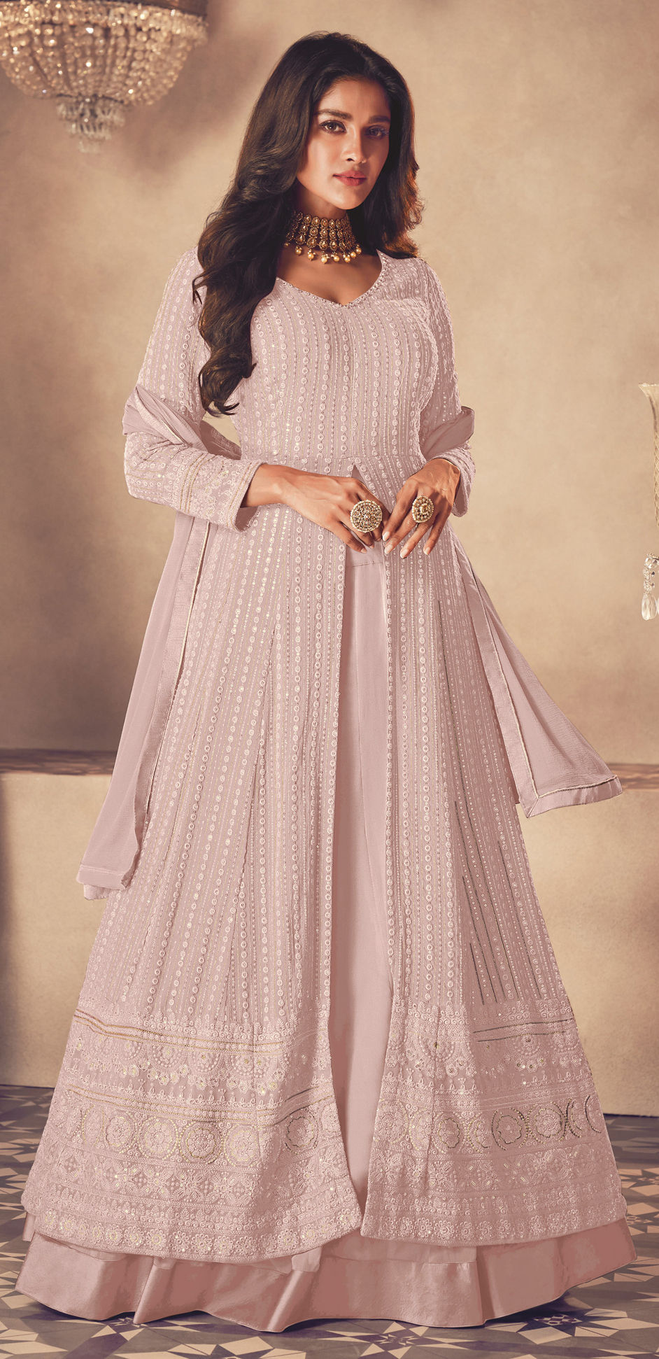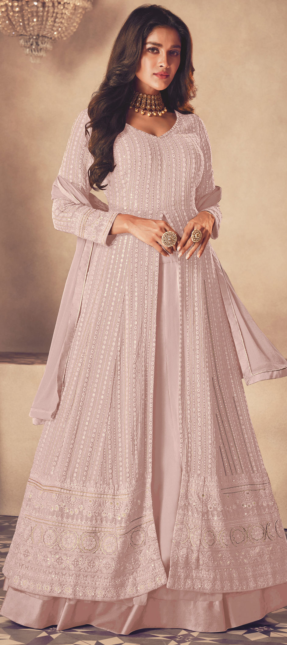 Pink and Majenta color Long Lehenga Choli in Georgette fabric with Embroidered, Resham, Sequence, Thread work