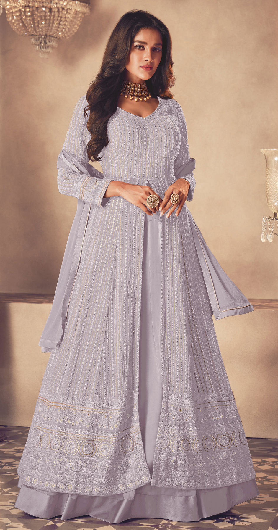 Purple and Violet color Long Lehenga Choli in Georgette fabric with Embroidered, Resham, Sequence, Thread work