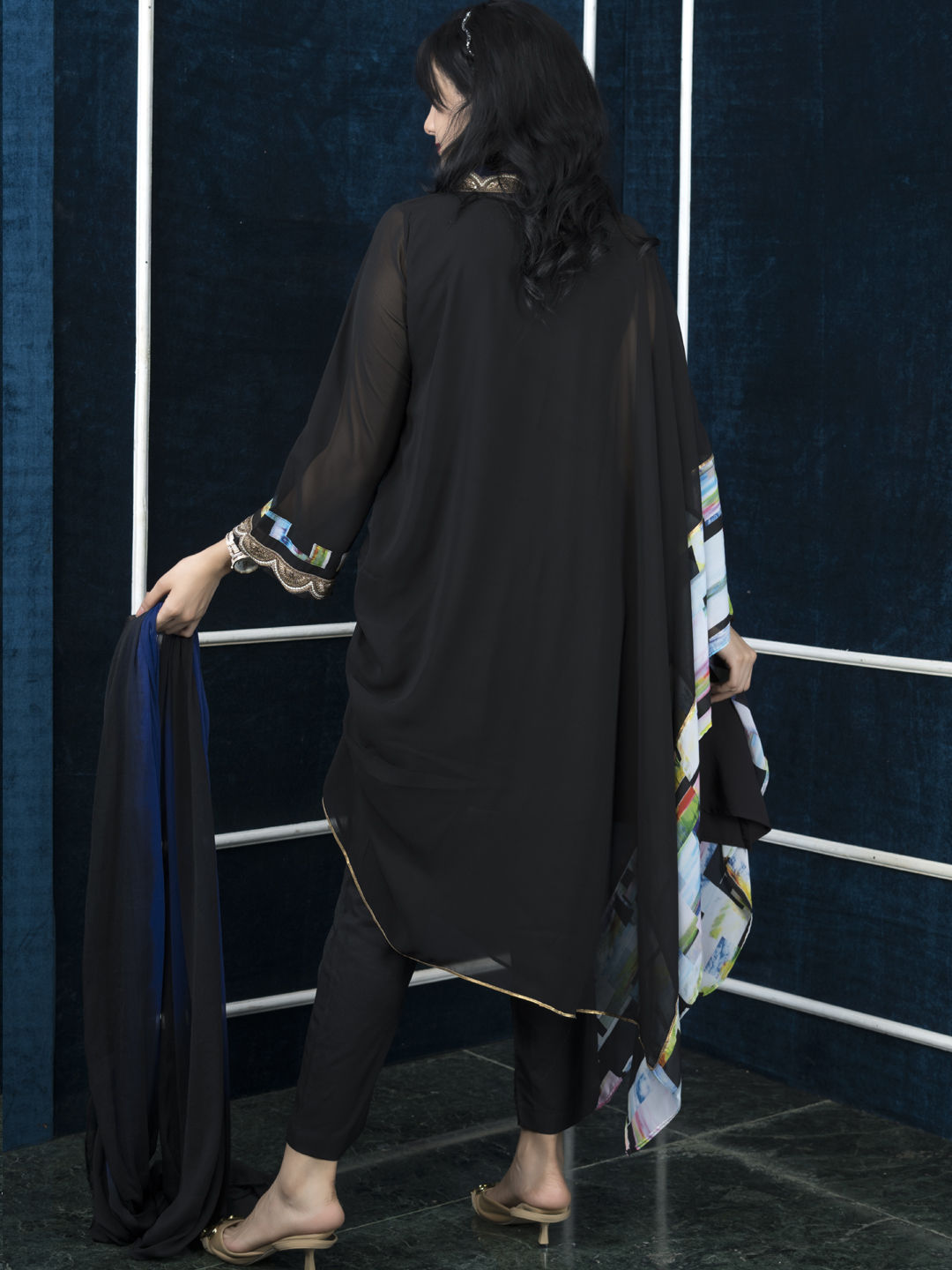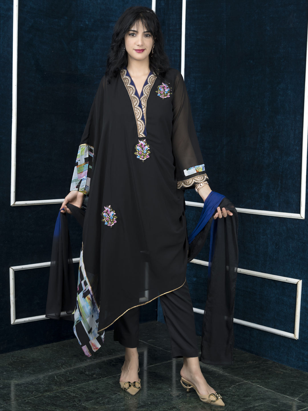 Black and Grey color Salwar Kameez in Georgette fabric with Embroidered, Thread work