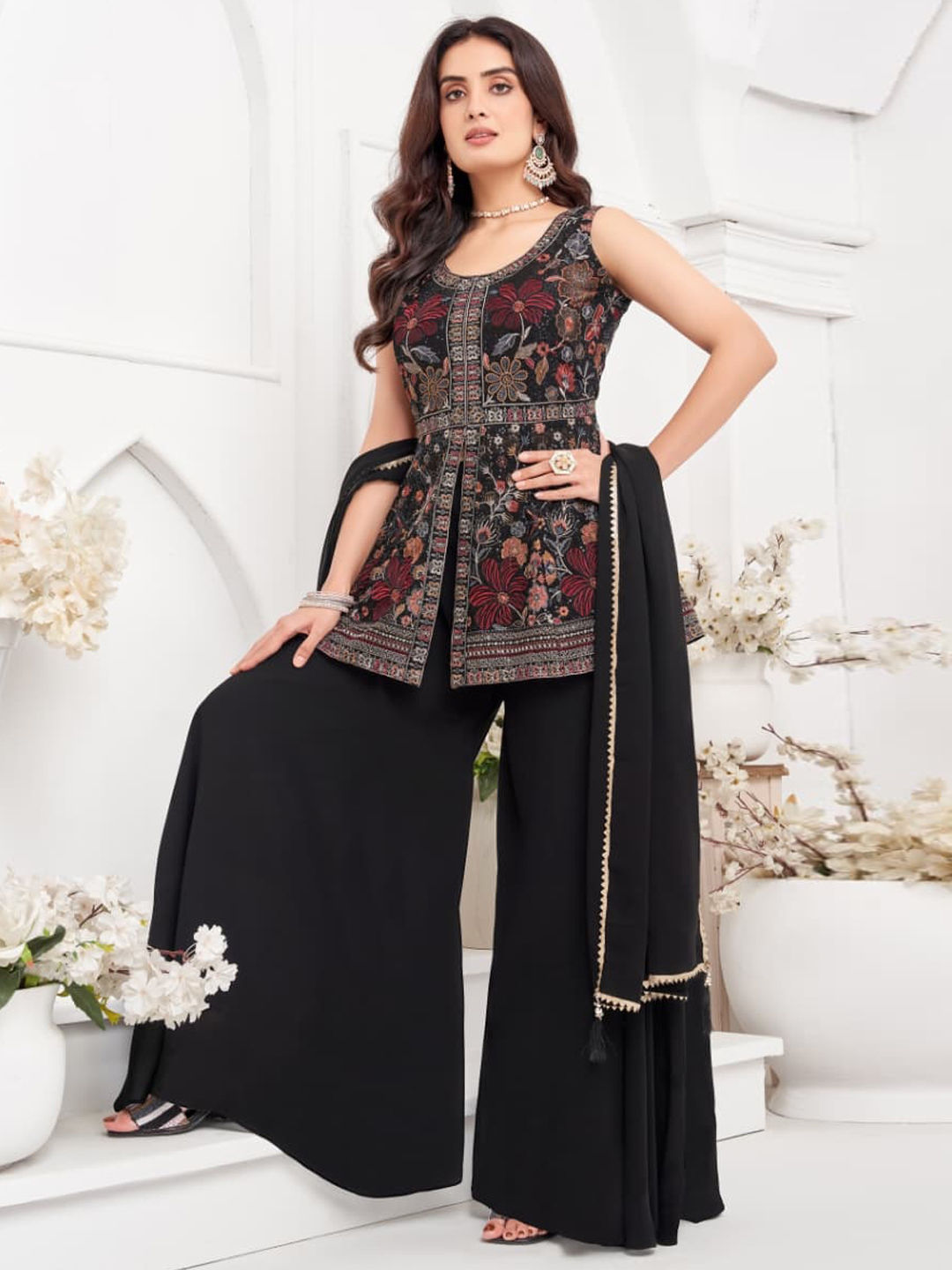 in Black and Grey with Embroidered work