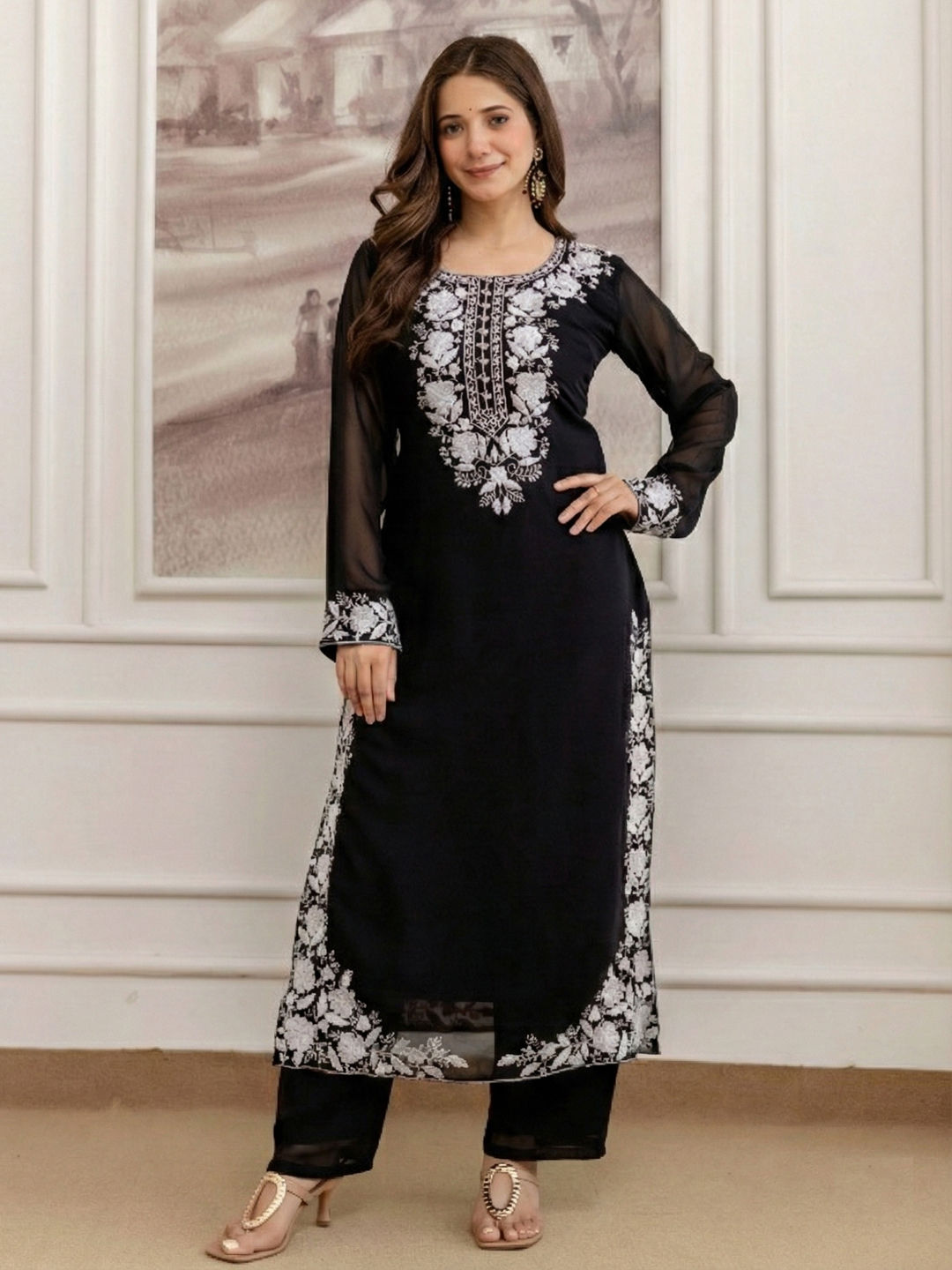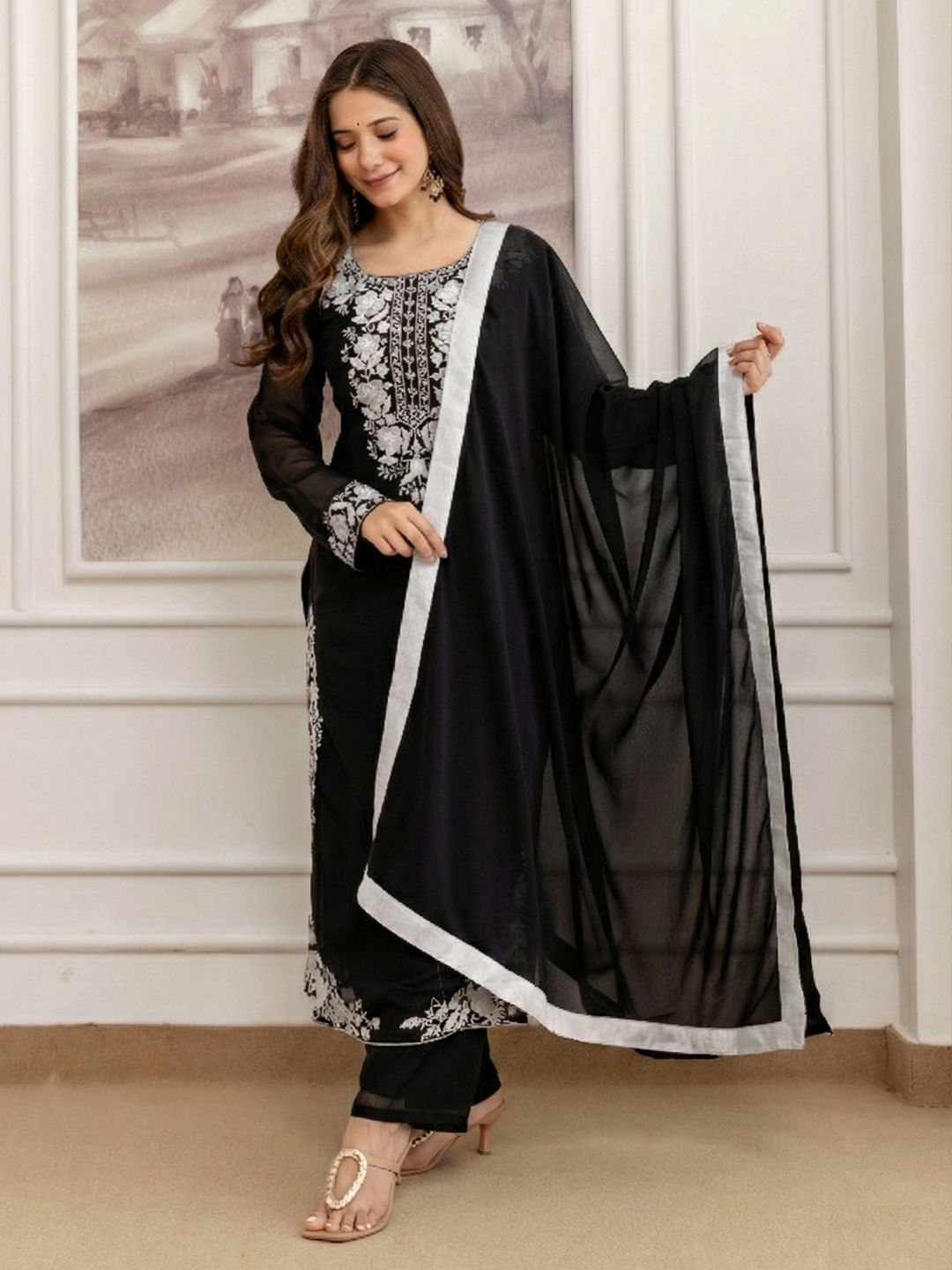 in Black and Grey with Embroidered work