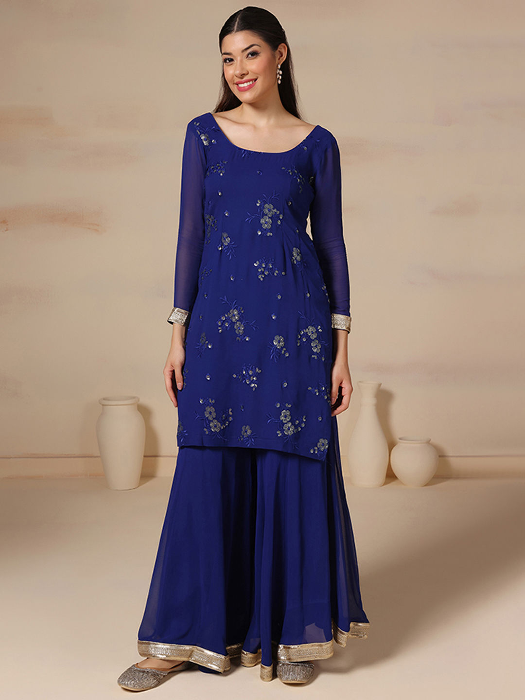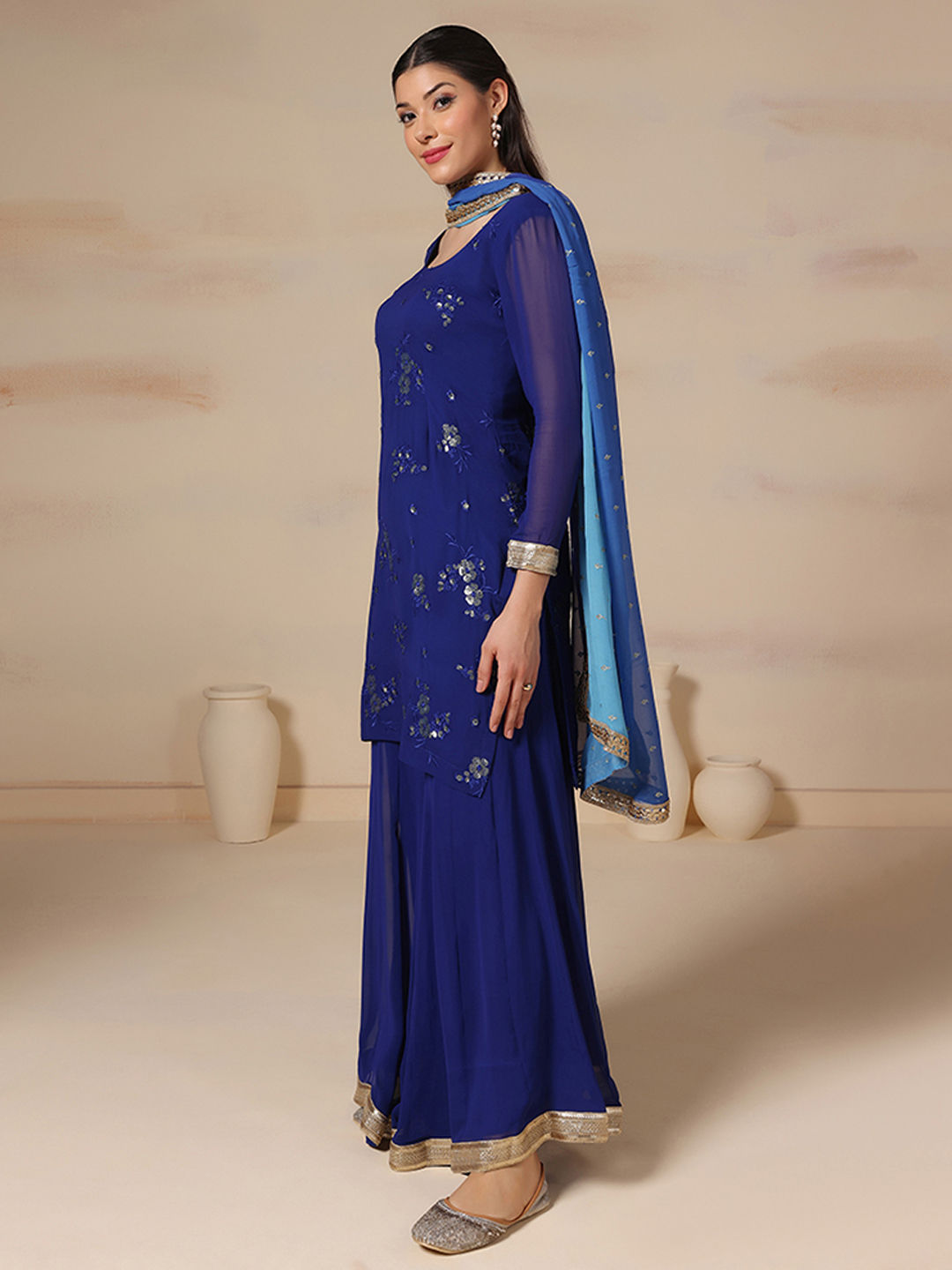 Blue color Salwar Kameez in Georgette fabric with Sequence, Thread work
