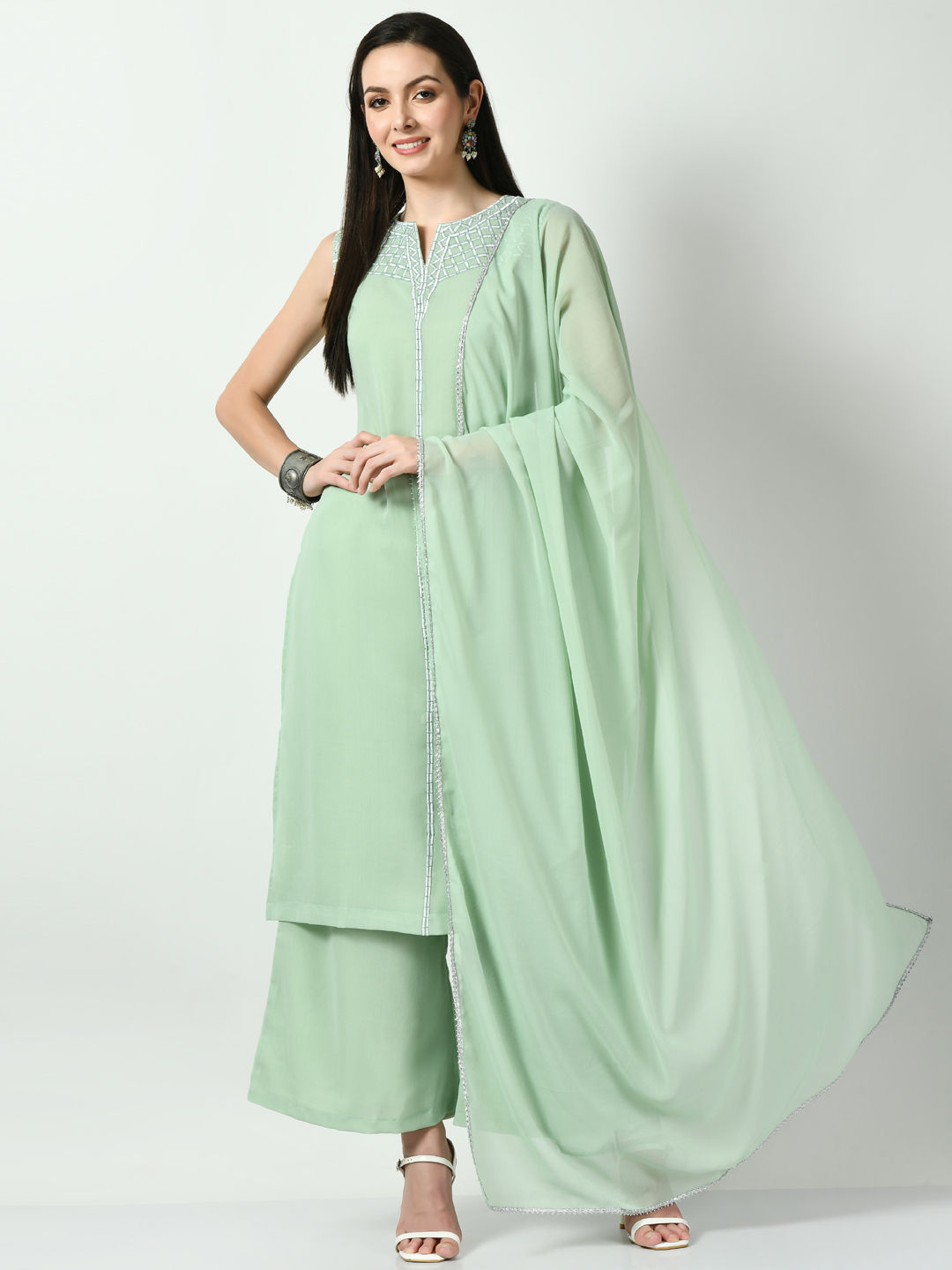 Green color Salwar Kameez in Georgette fabric with Embroidered, Thread work