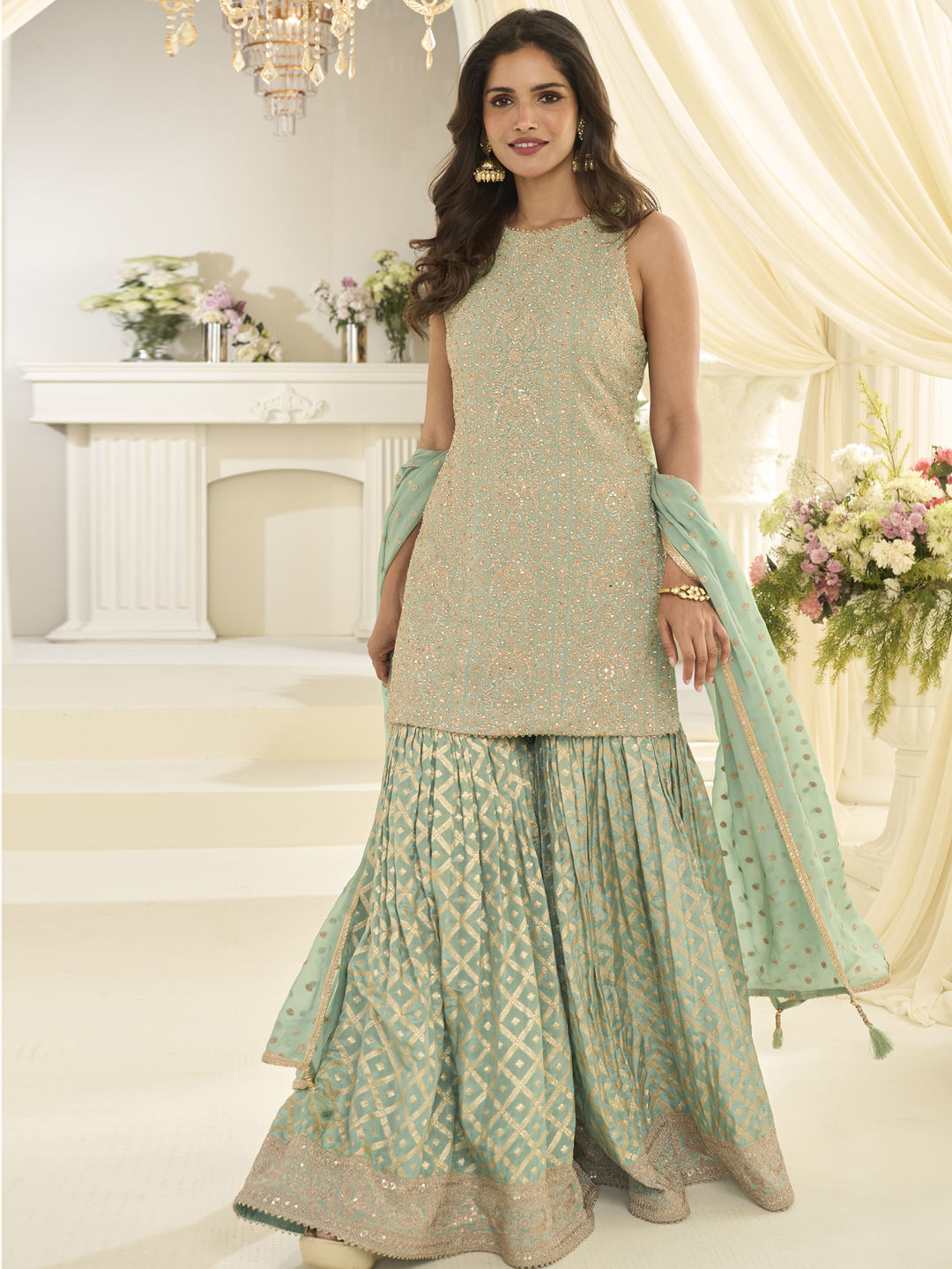 in Green with Embroidered work