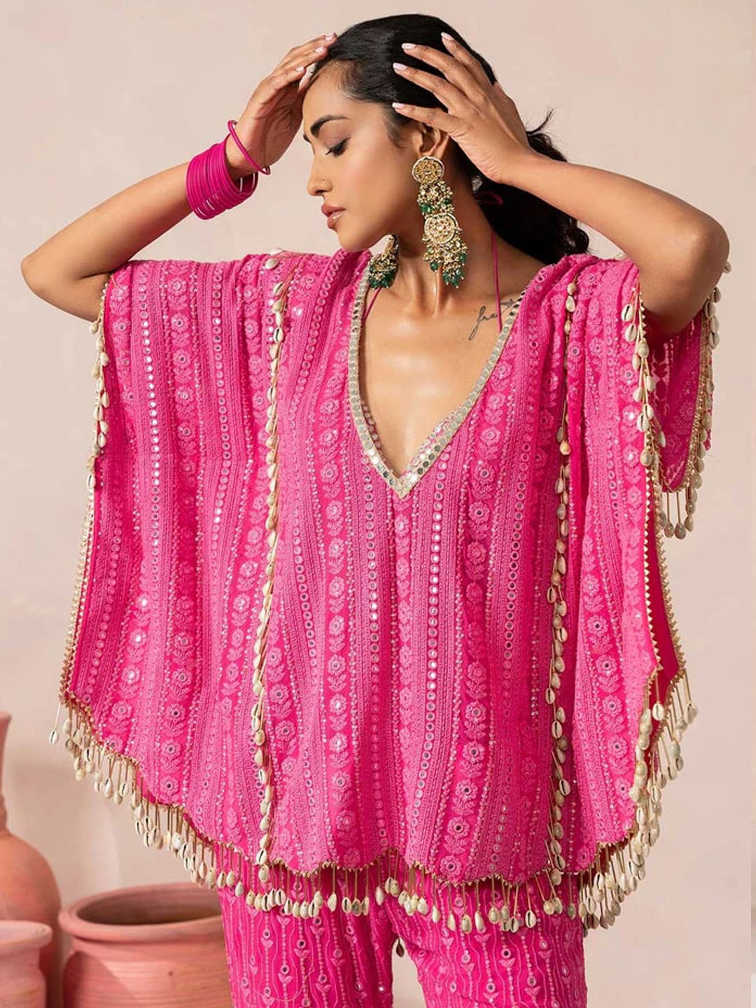 Pink and Majenta color Salwar Kameez in Georgette fabric with Embroidered, Sequence, Thread work