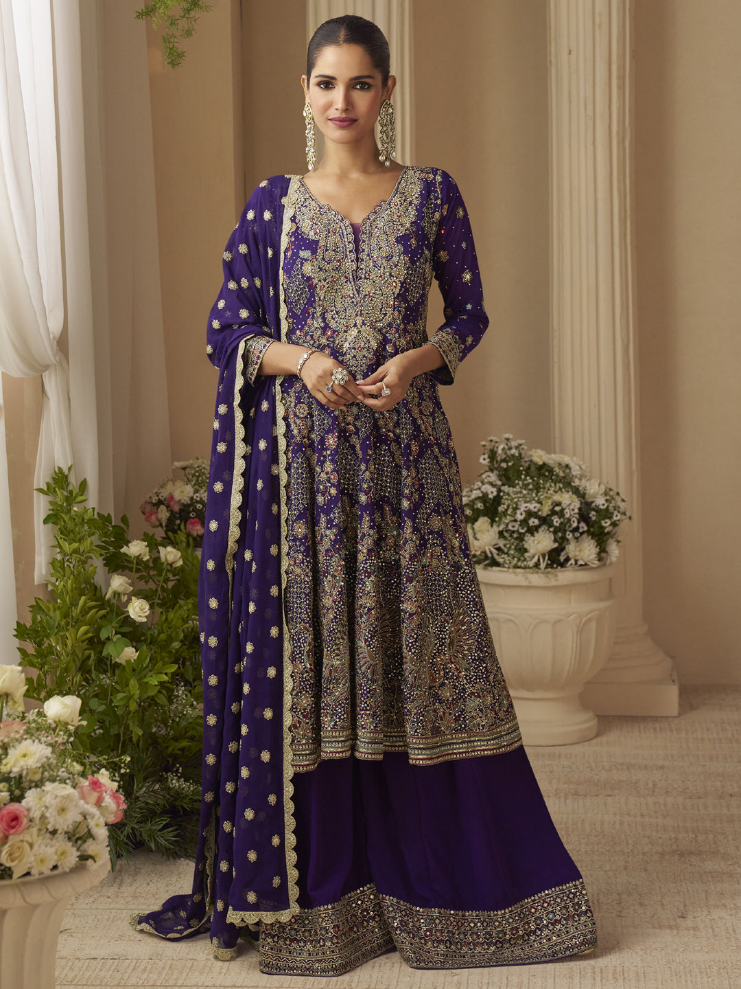 in Purple and Violet with Embroidered work