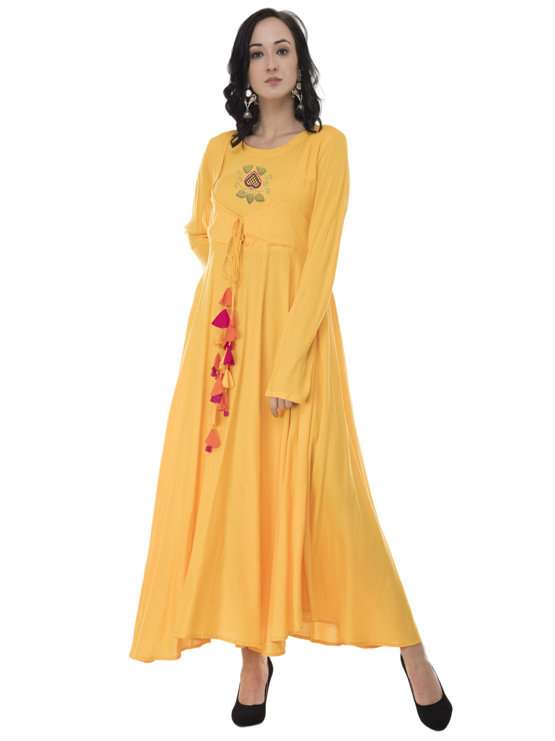 Yellow color Salwar Kameez in Georgette fabric with Embroidered work