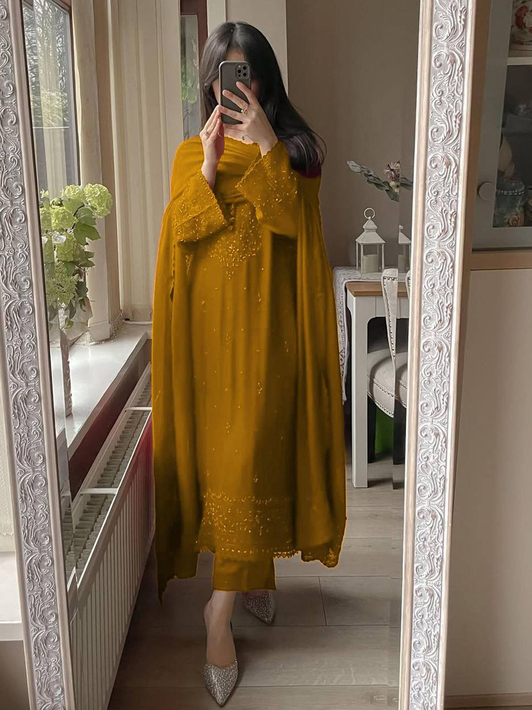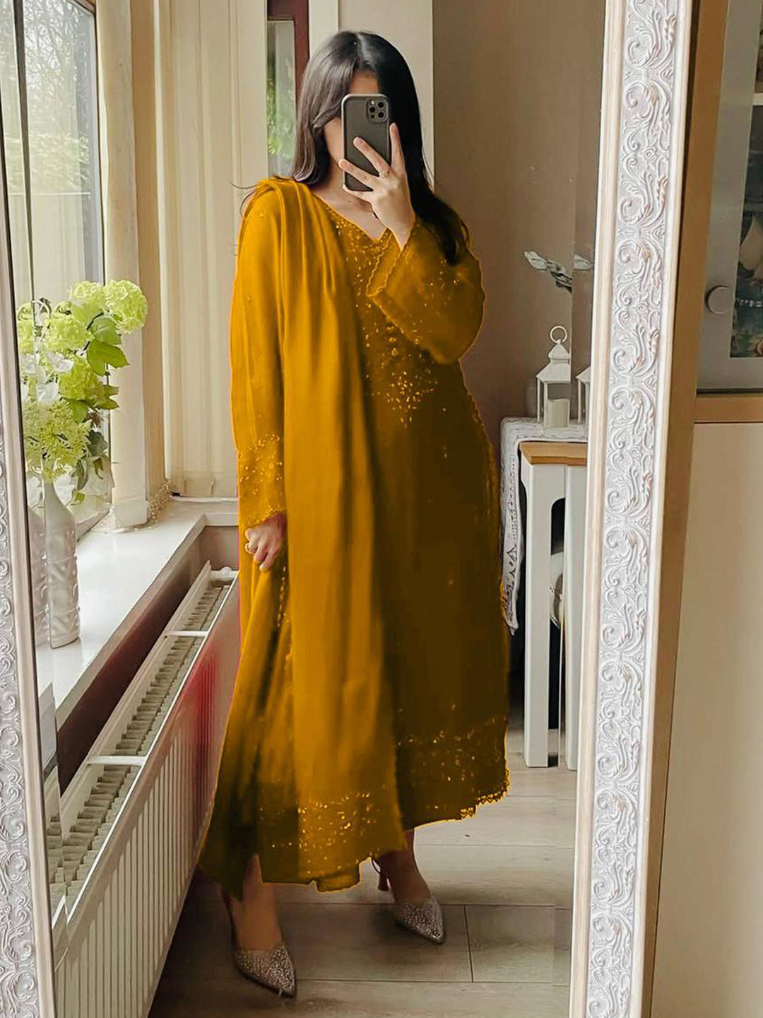 Yellow color Salwar Kameez in Georgette fabric with Embroidered, Sequence, Thread work