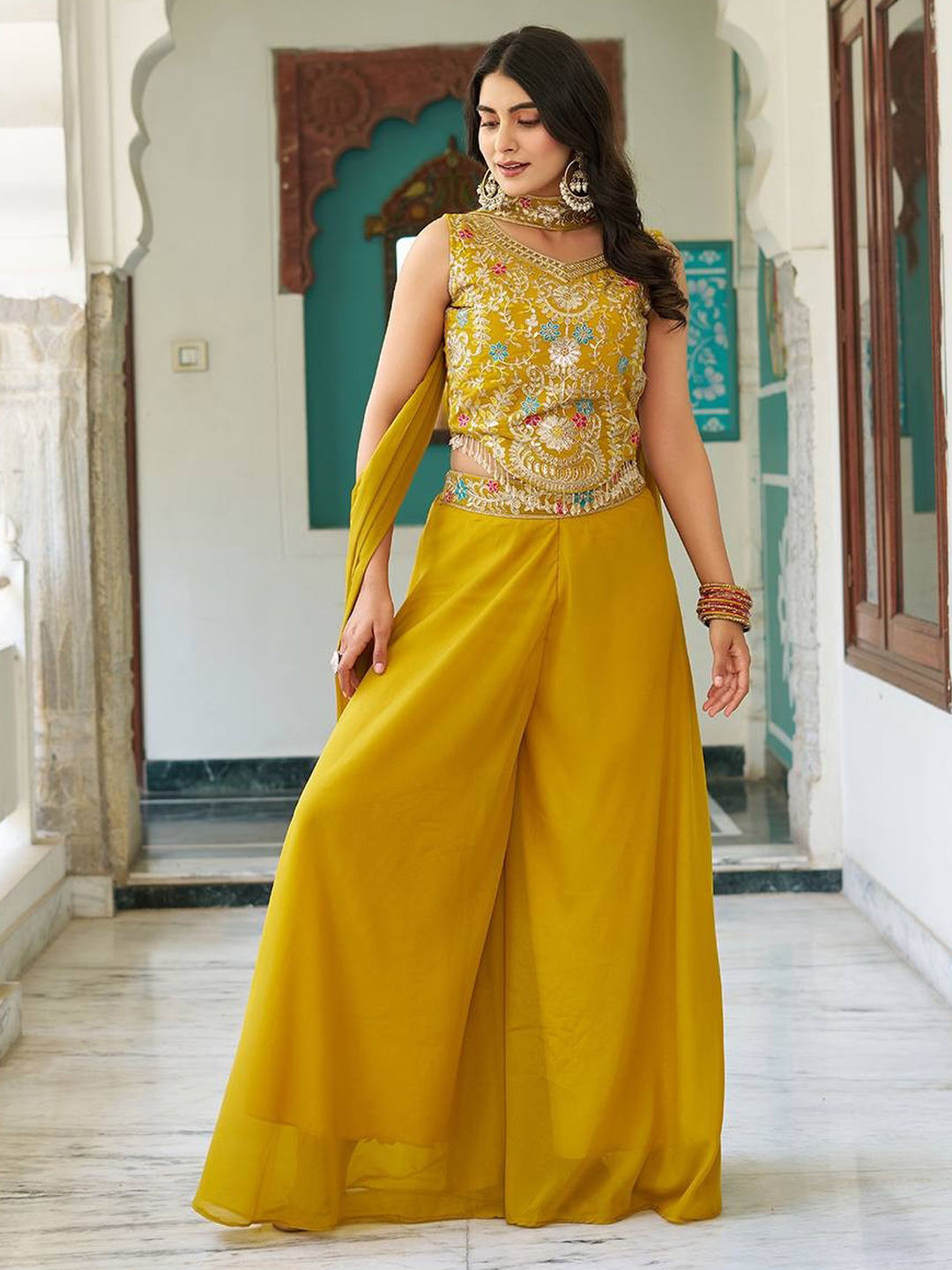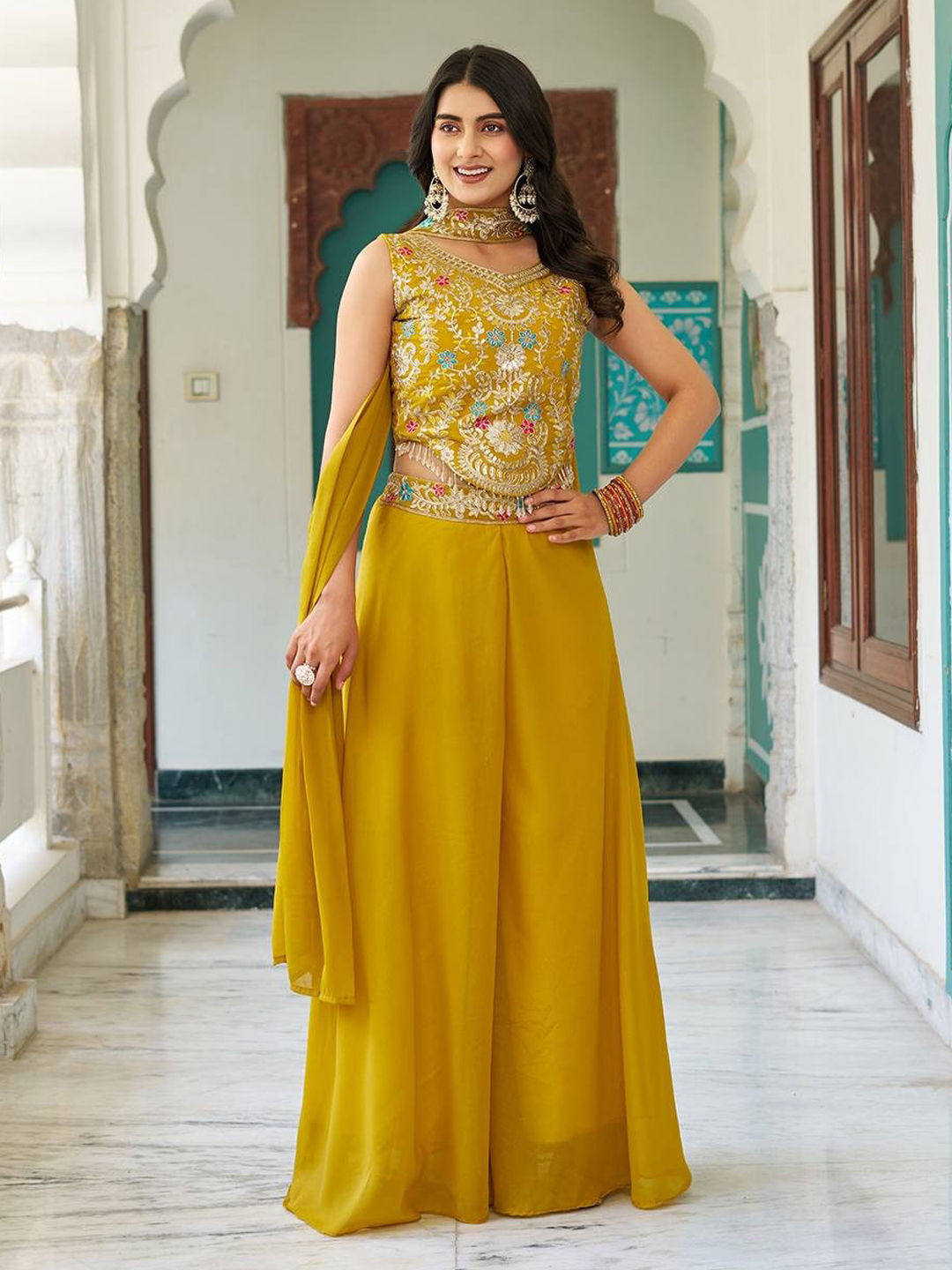 Yellow color Salwar Kameez in Georgette fabric with Embroidered, Sequence, Thread work