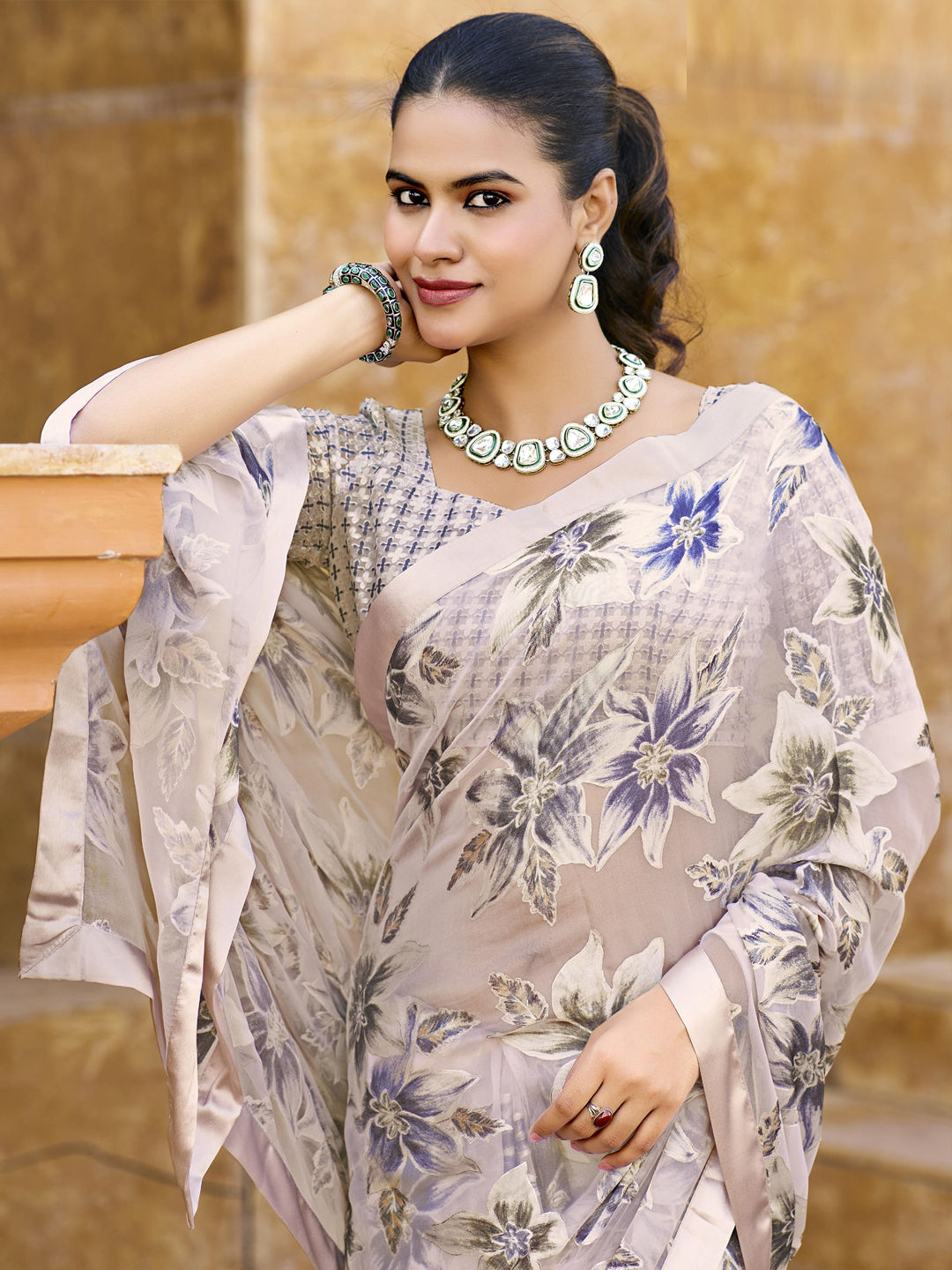 in Beige and Brown with Floral work