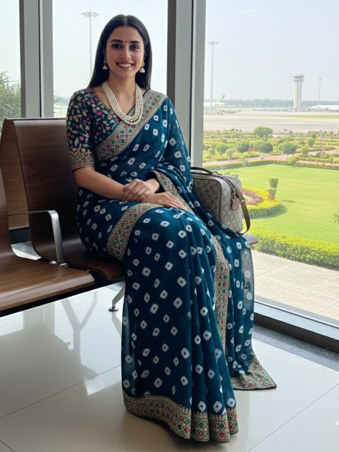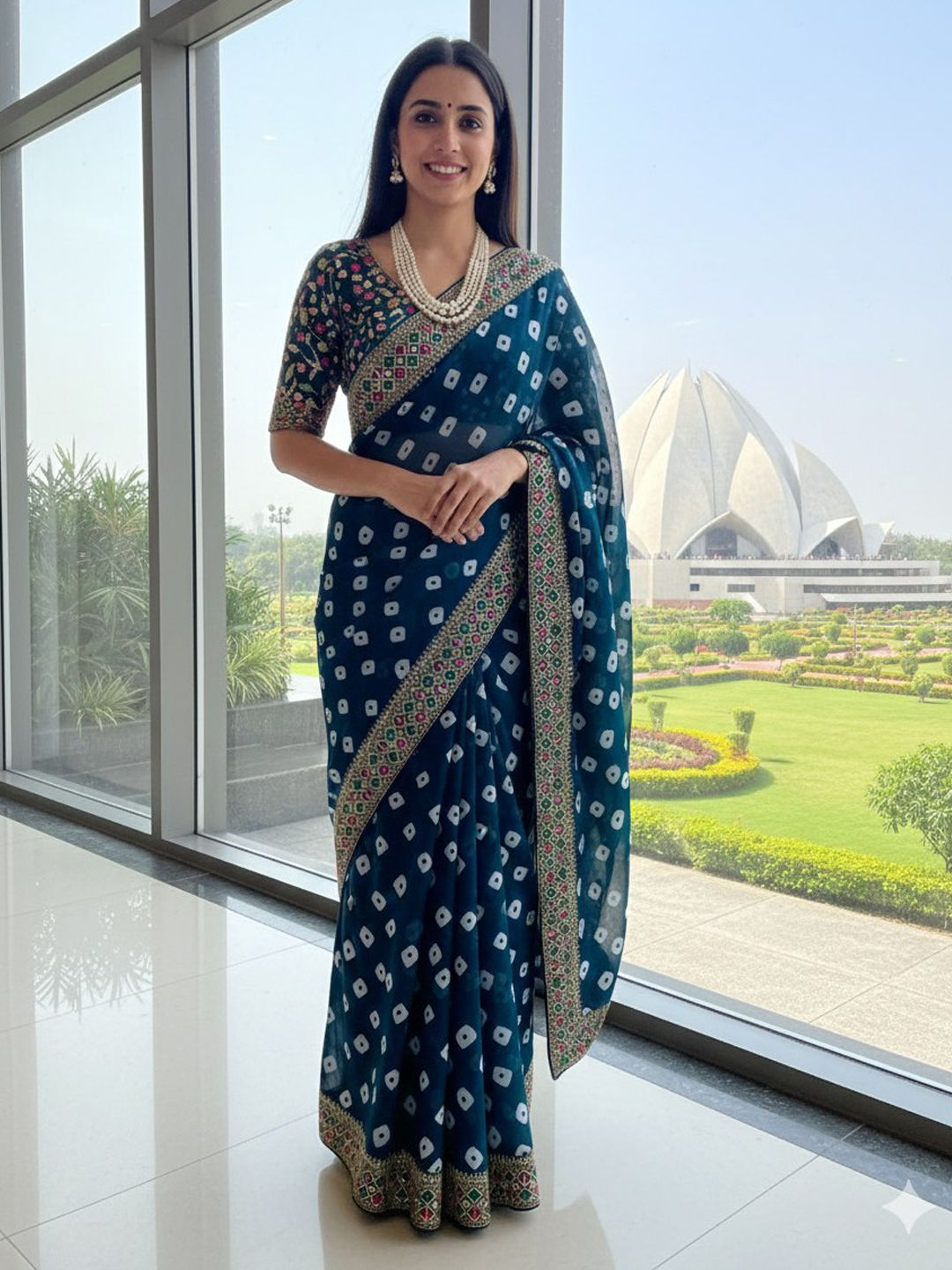 in Blue with Bandhej work