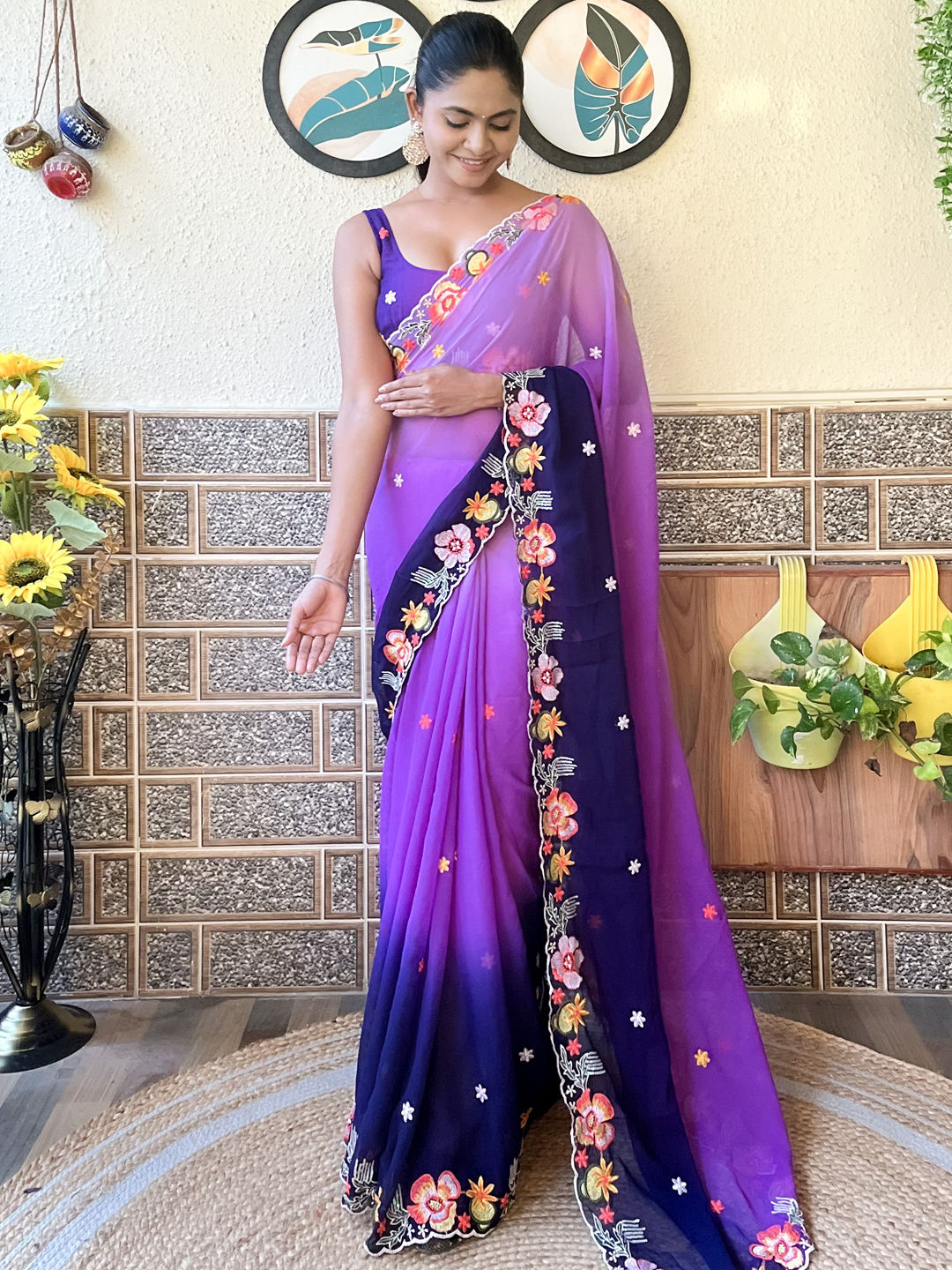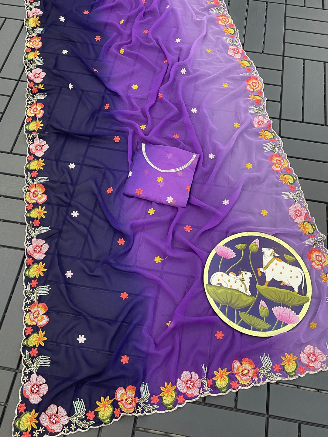 Blue, Purple and Violet color Saree in Georgette fabric with Embroidered, Thread work