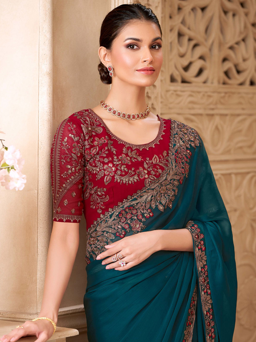 Blue color Saree in Georgette fabric with Embroidered, Sequence work