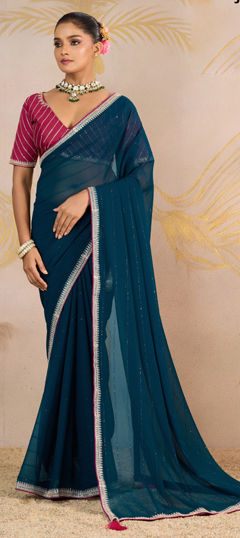 Blue color Saree in Georgette fabric with Sequence, Zari work