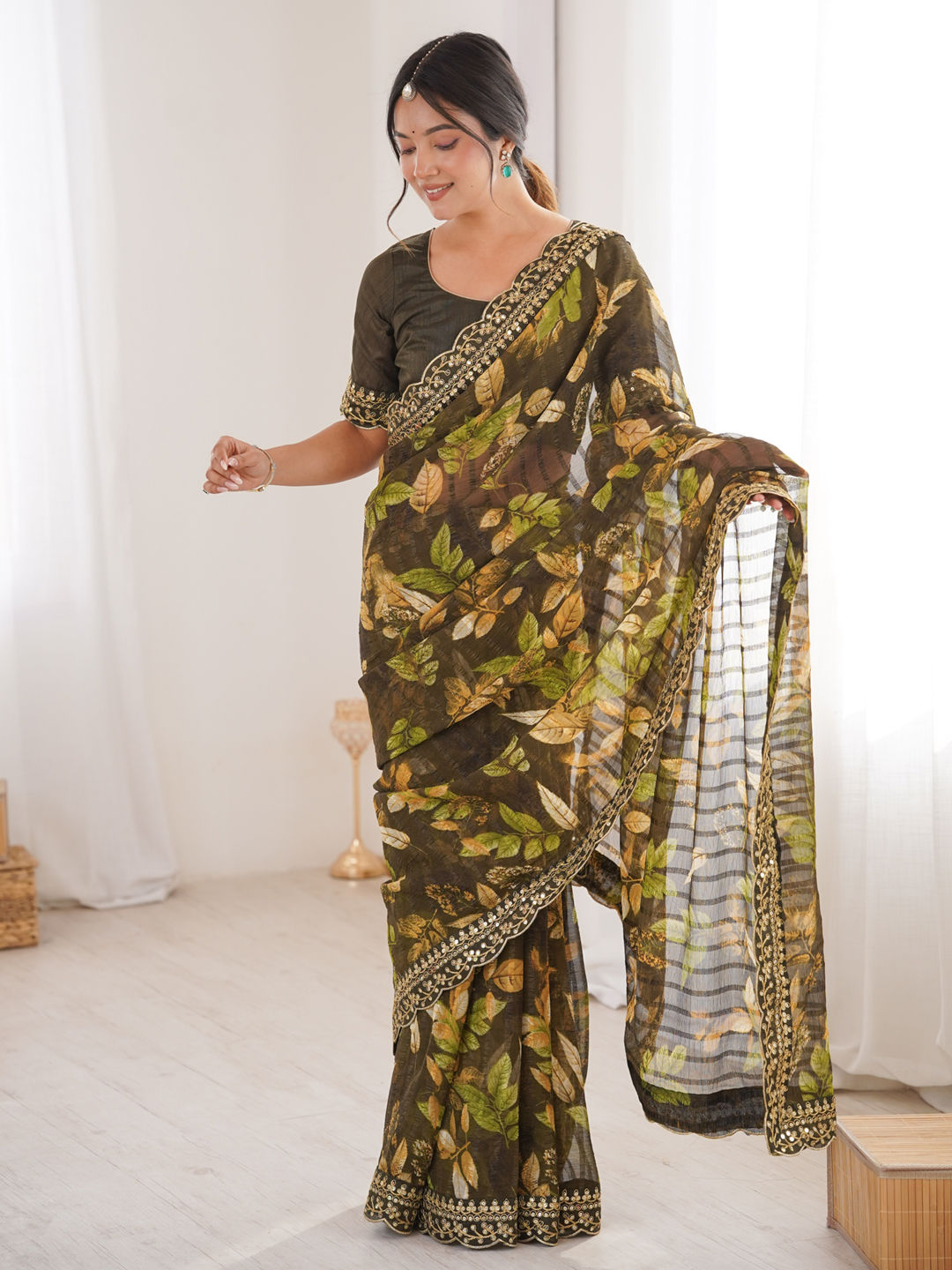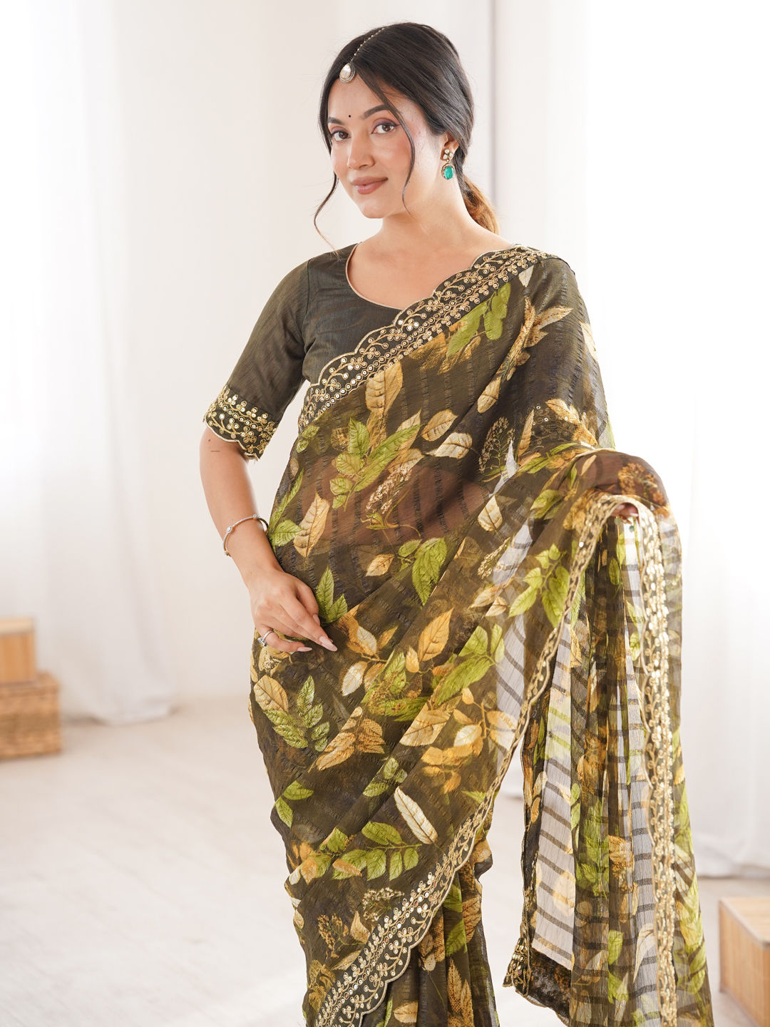 in Green with Embroidered work