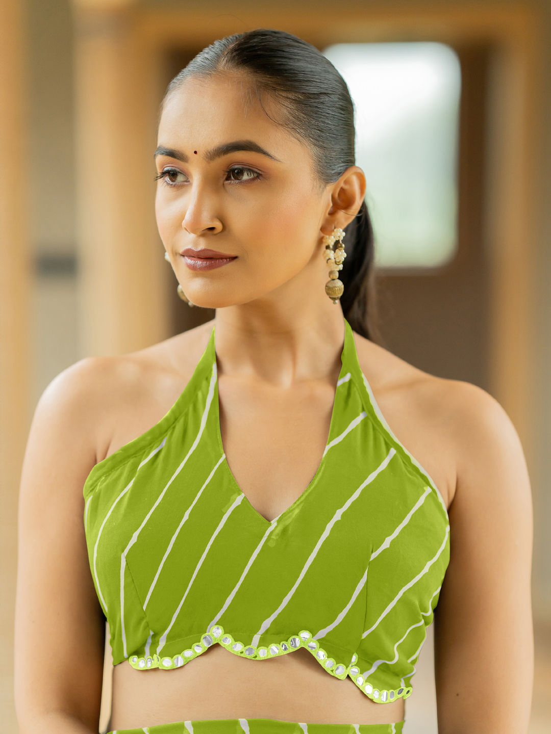 in Green with Lehariya work