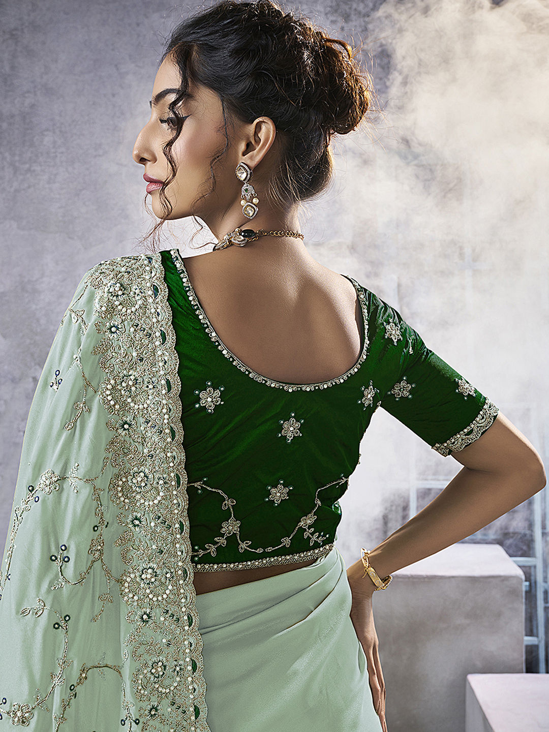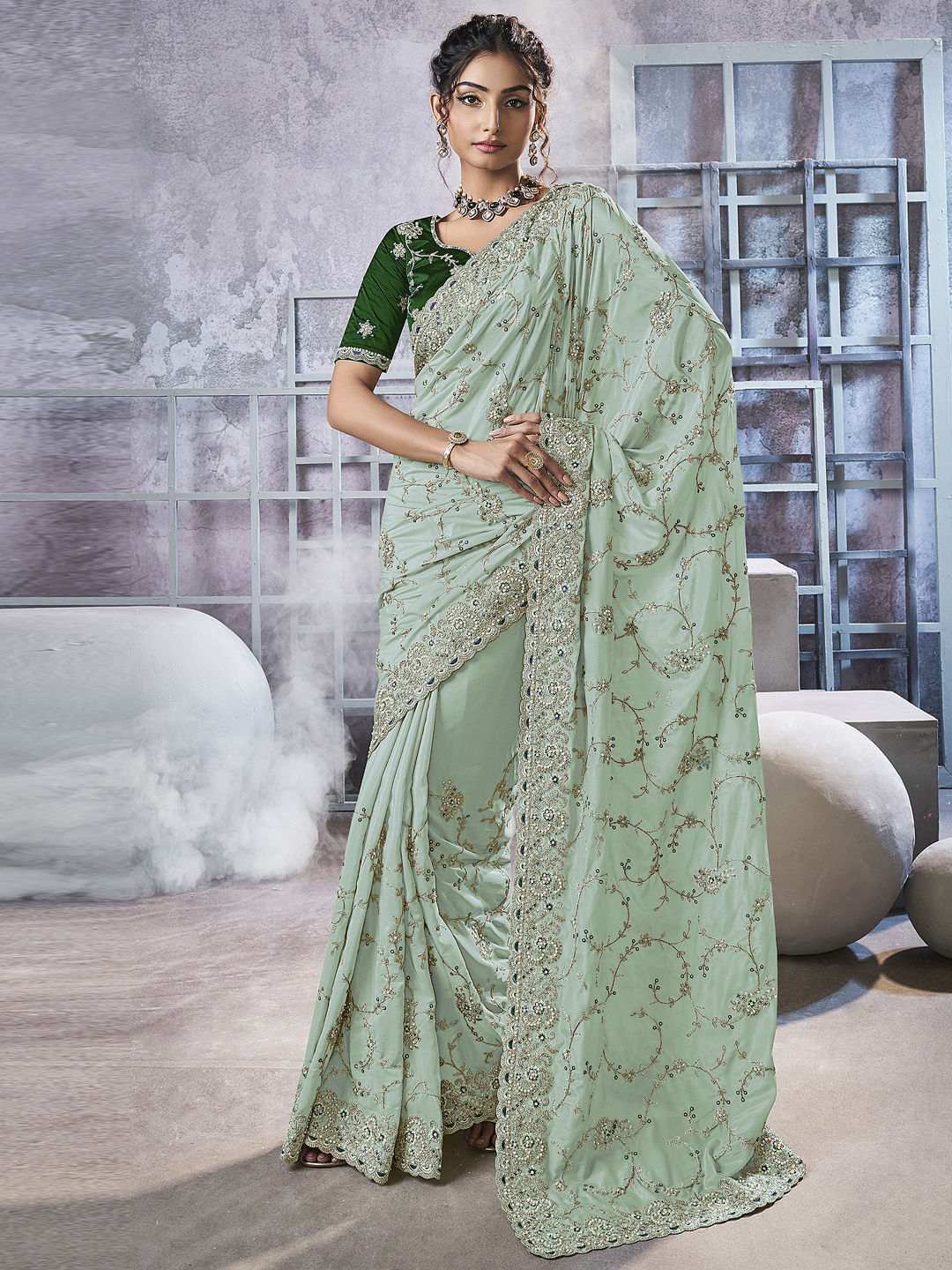 Green color Saree in Georgette fabric with Bugle Beads, Moti, Thread, Zari work
