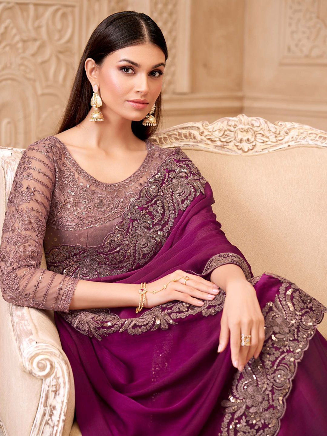 in Pink and Majenta with Embroidered work