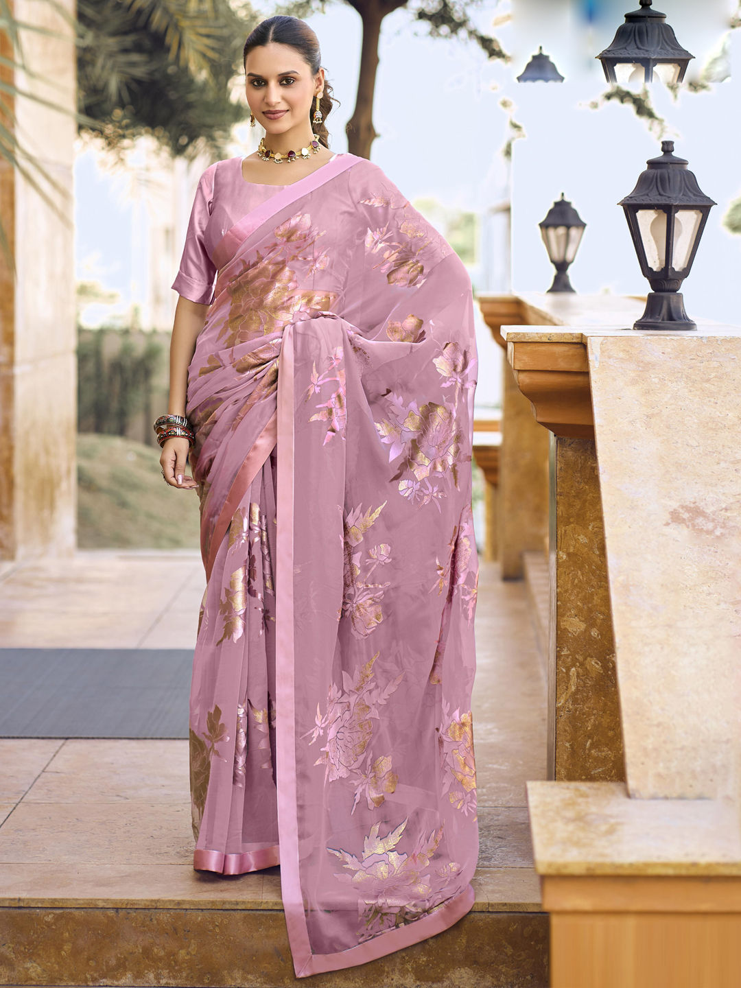 Georgette Festive Saree in Pink and Majenta with Floral work