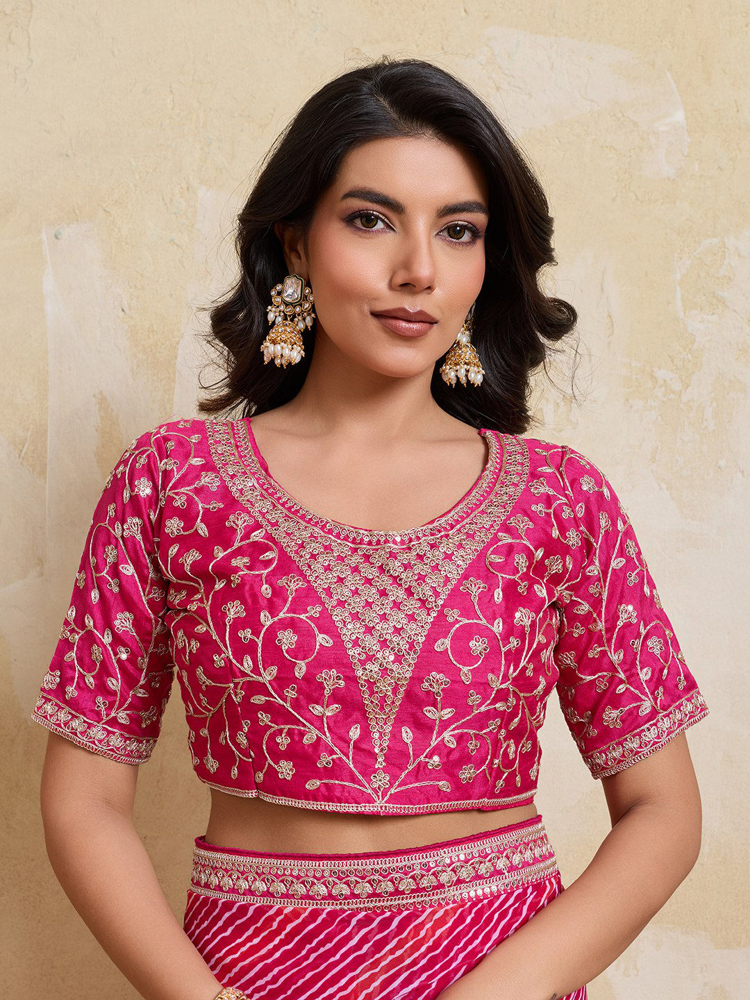 in Pink and Majenta with Lace work
