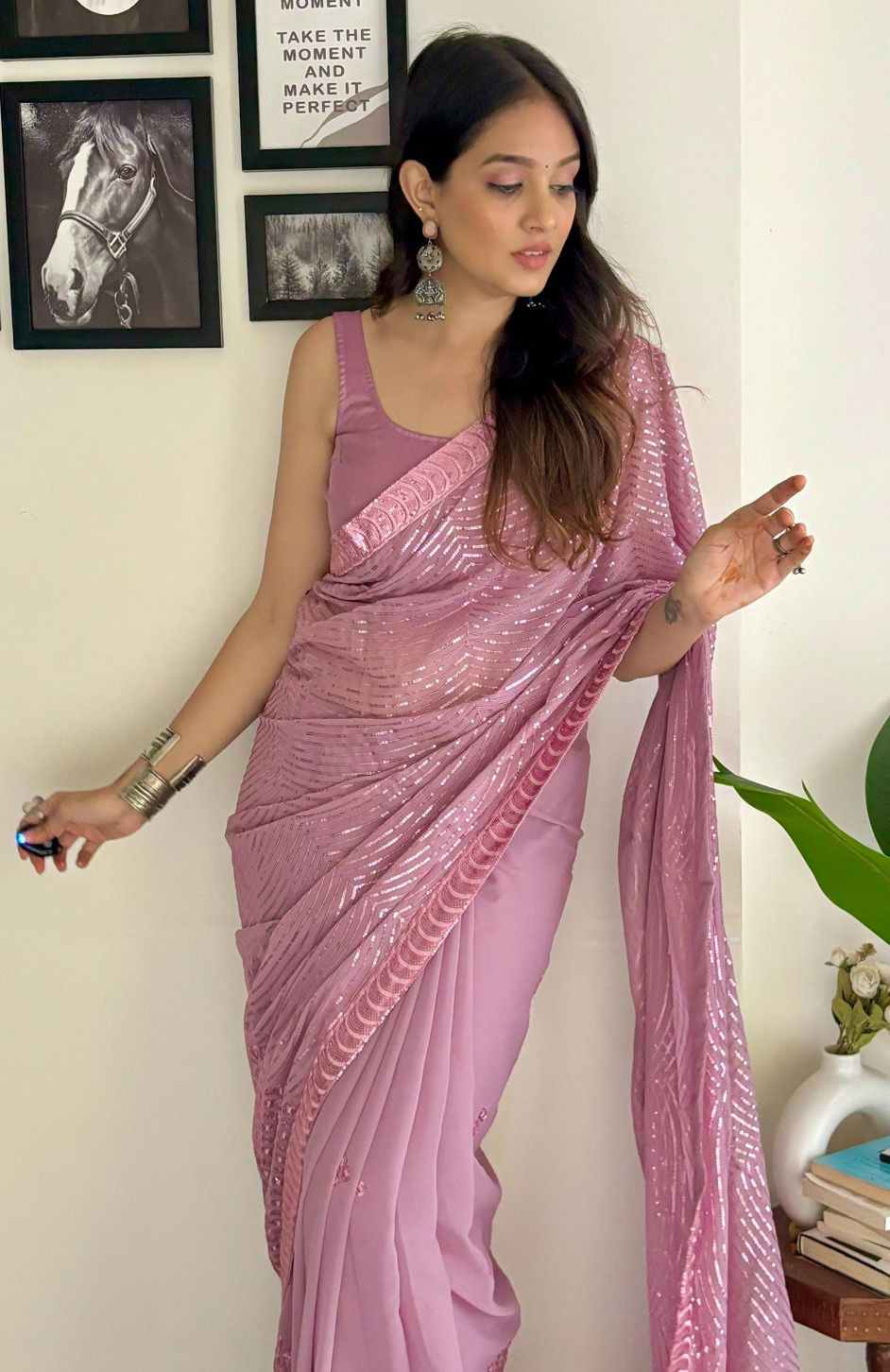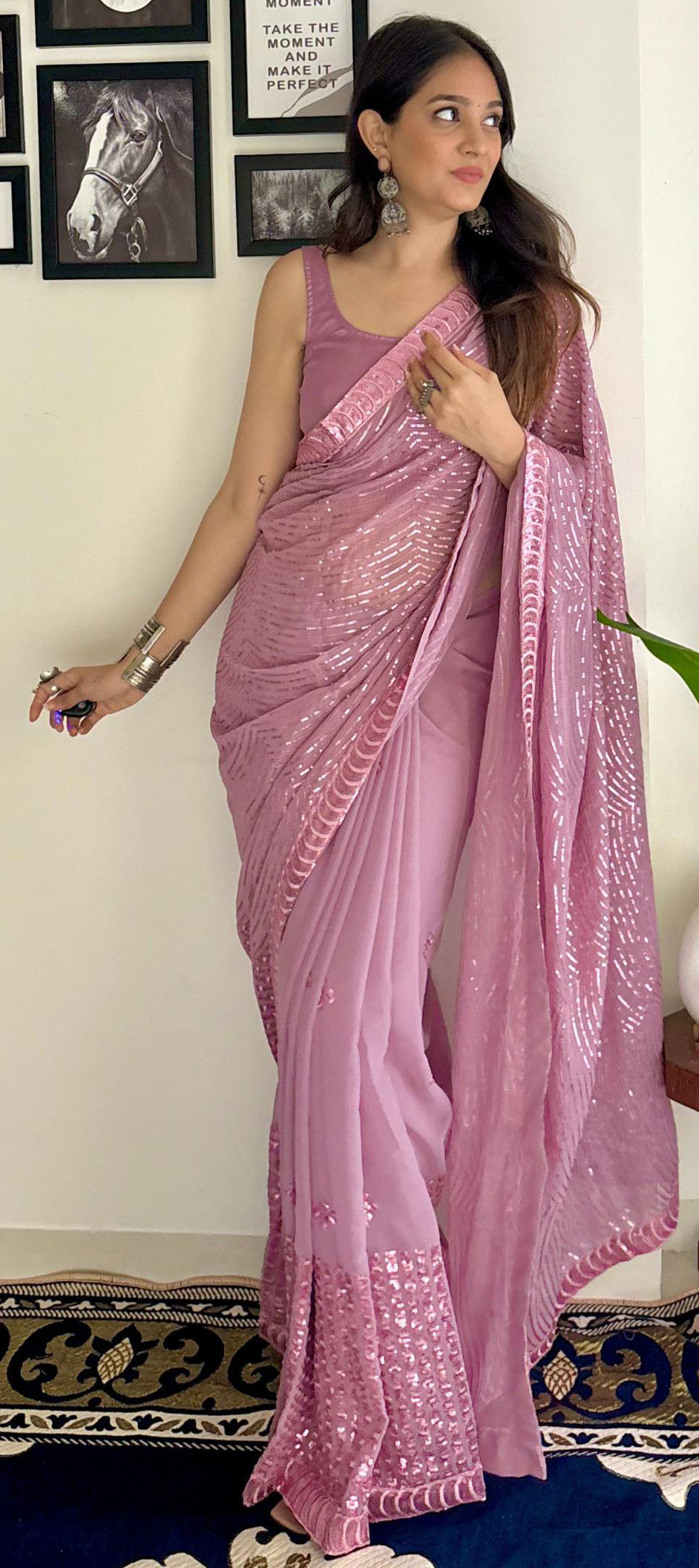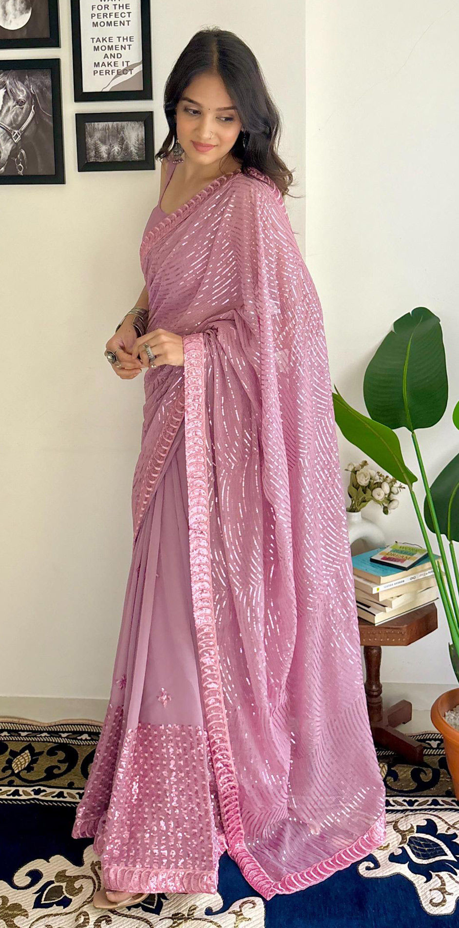 Pink and Majenta color Saree in Georgette fabric with Sequence work