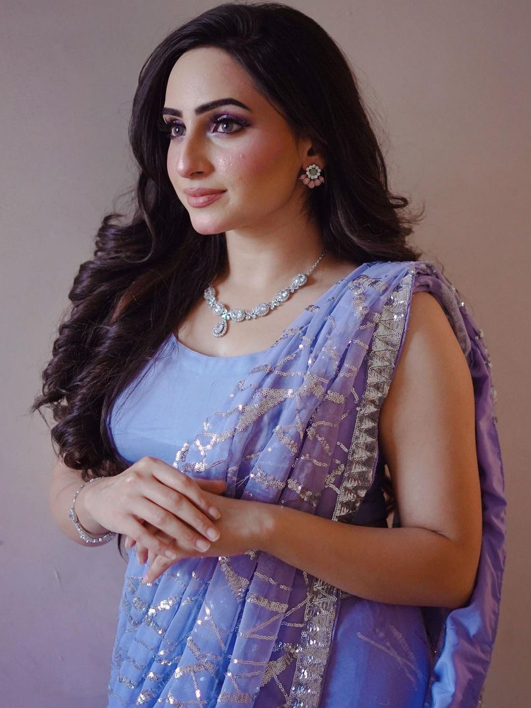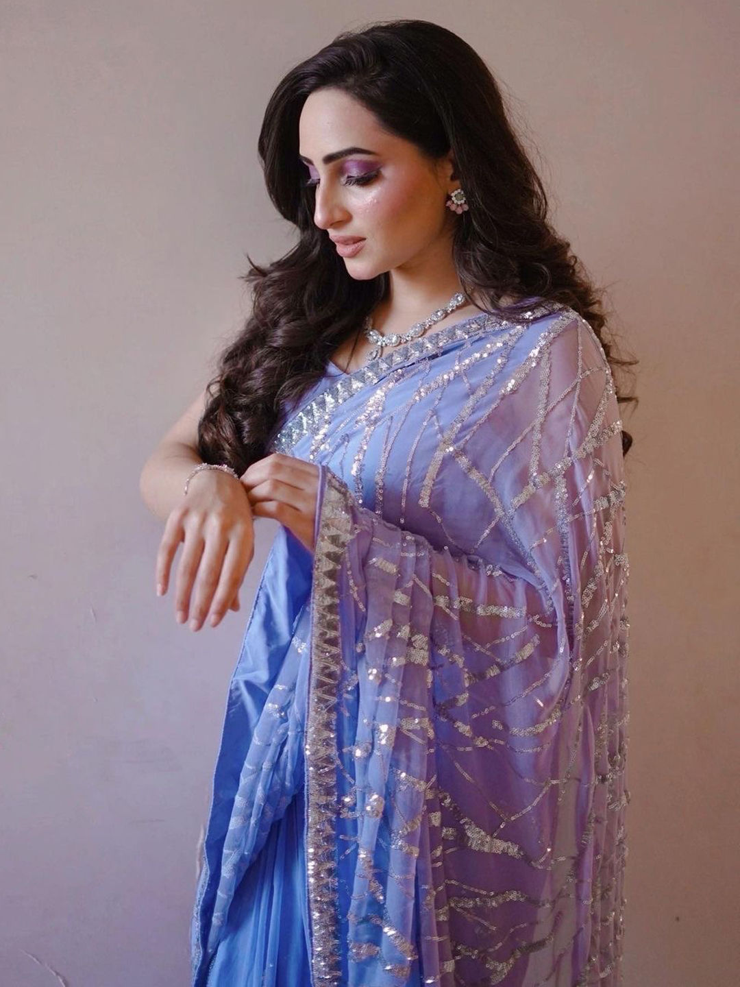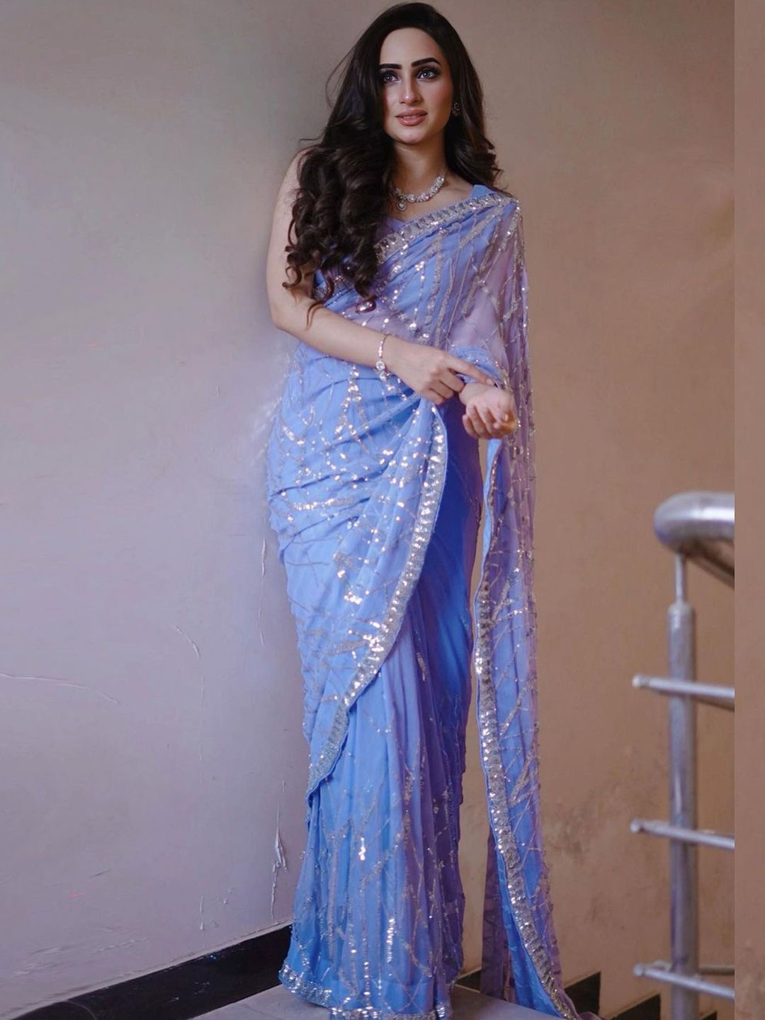 Purple and Violet color Saree in Georgette fabric with Embroidered, Sequence, Thread work