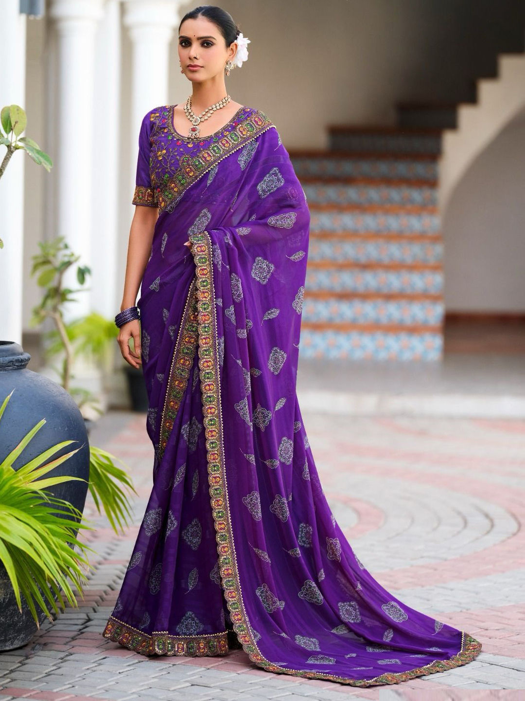 in Purple and Violet with Printed work