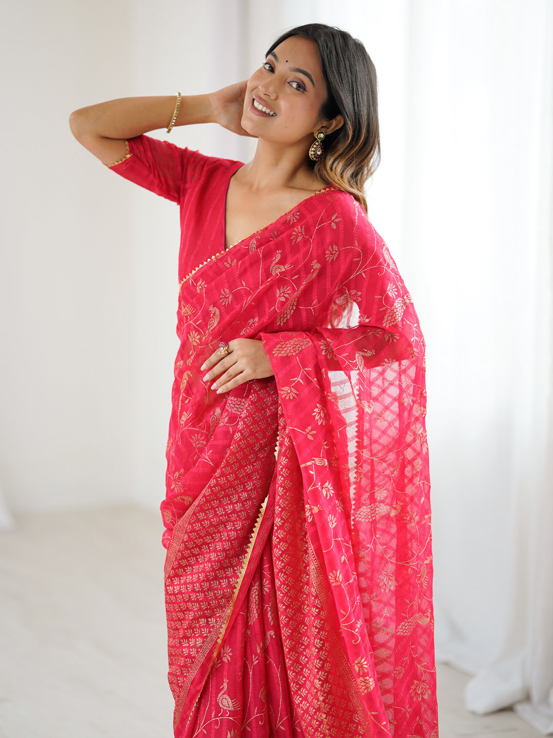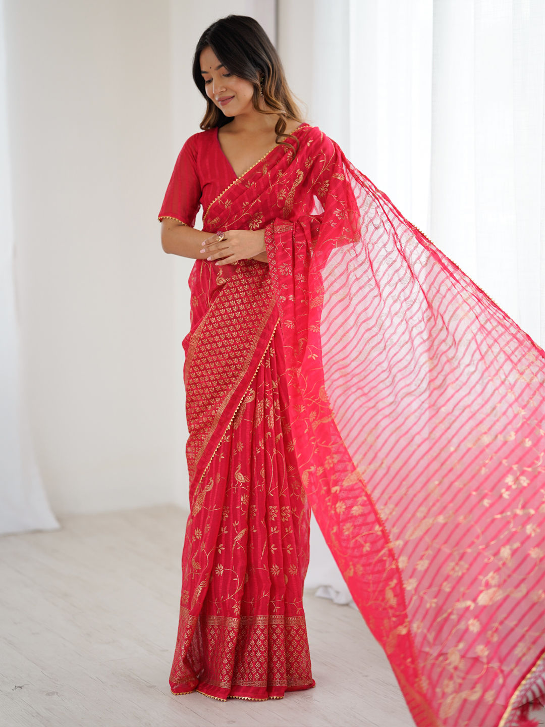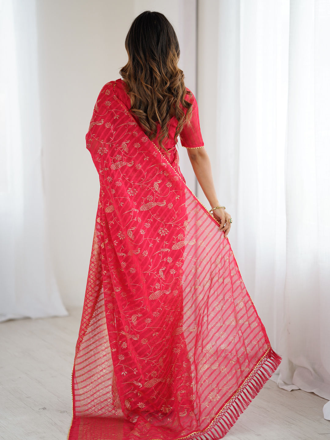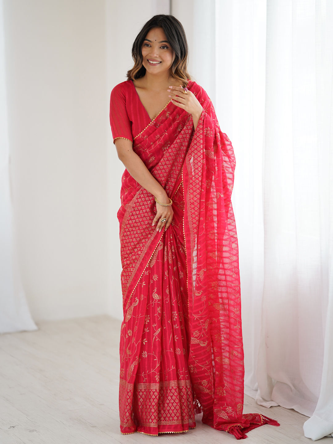 in Red and Maroon with Foil Print work
